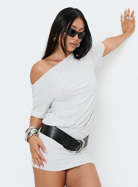 Ashlinn Off Shoulder Drapey Mini Dress Grey