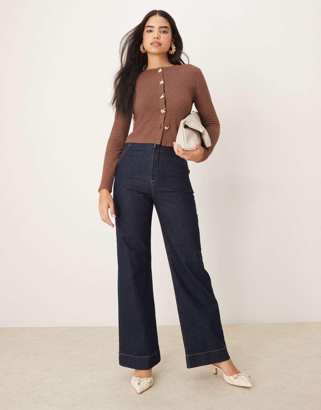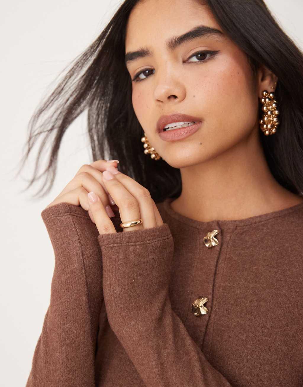 ASOS DESIGN cozy supersoft cardigan with gold button detail in brown