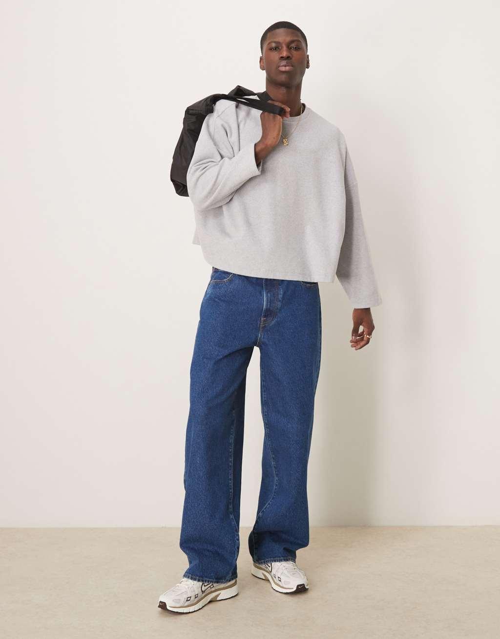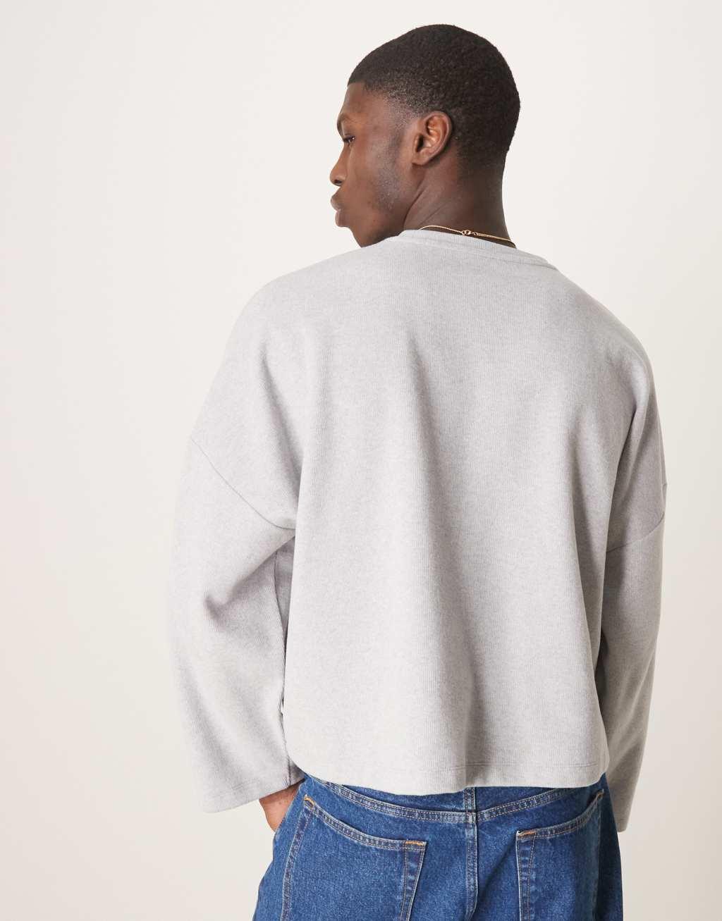 ASOS DESIGN super oversized cropped sweater in heavyweight brushed rib in gray heather