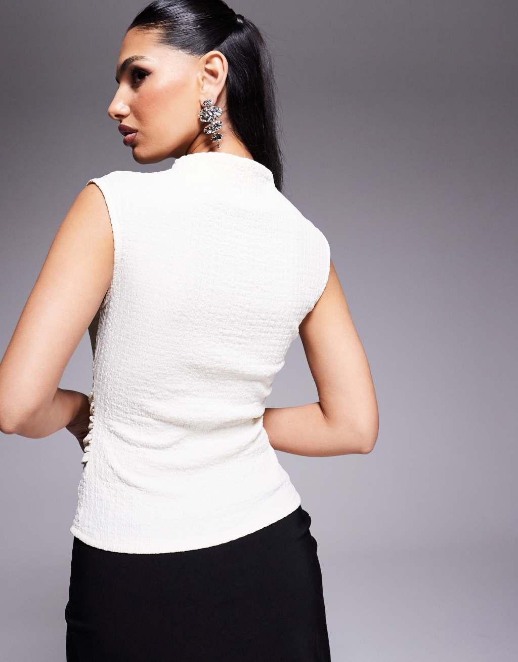 ASOS DESIGN textured grown on neck sleeveless top with hardware metal trim in cream