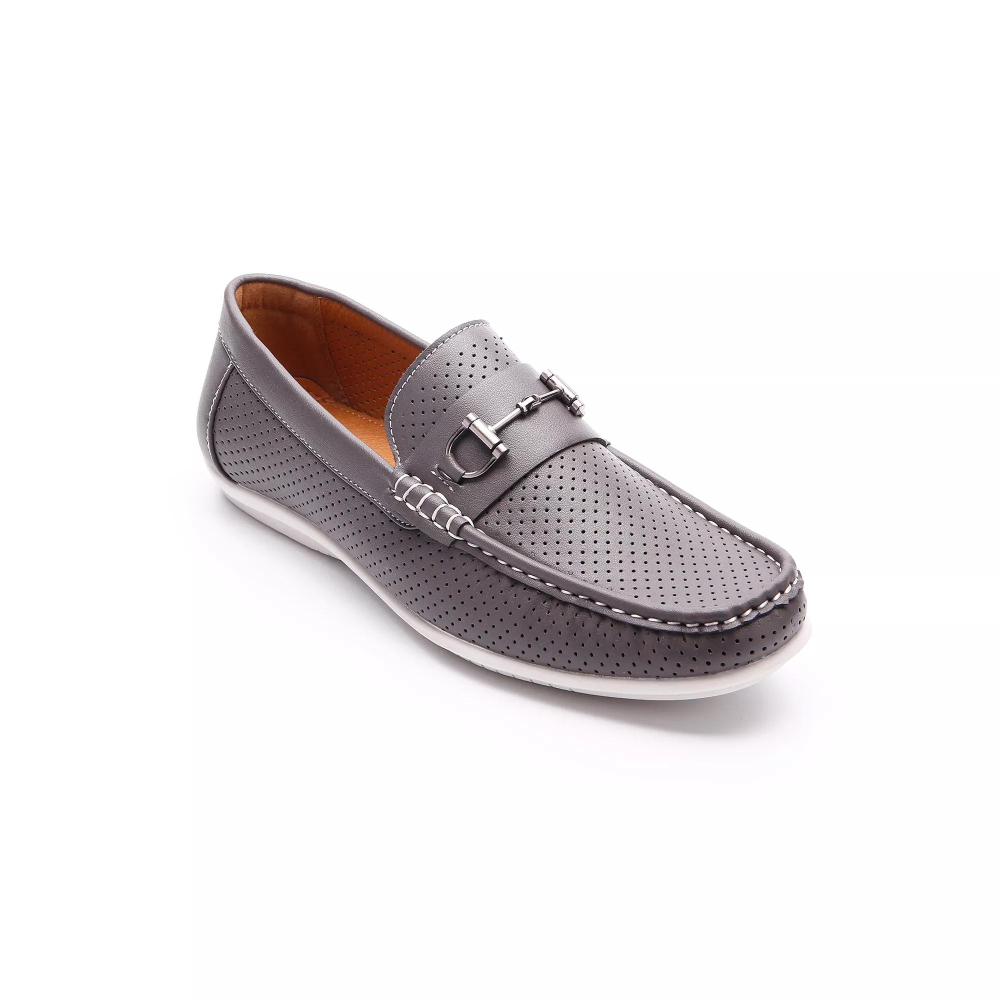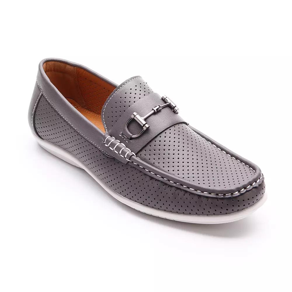 Moc-toe slip-on driving shoes|Metal bit over vamp; perforated upper; contrast stitching|Flexible rubber sole|Shoe width - medium|Polyurethane faux leather upper; rubber sole|Spot clean|Imported