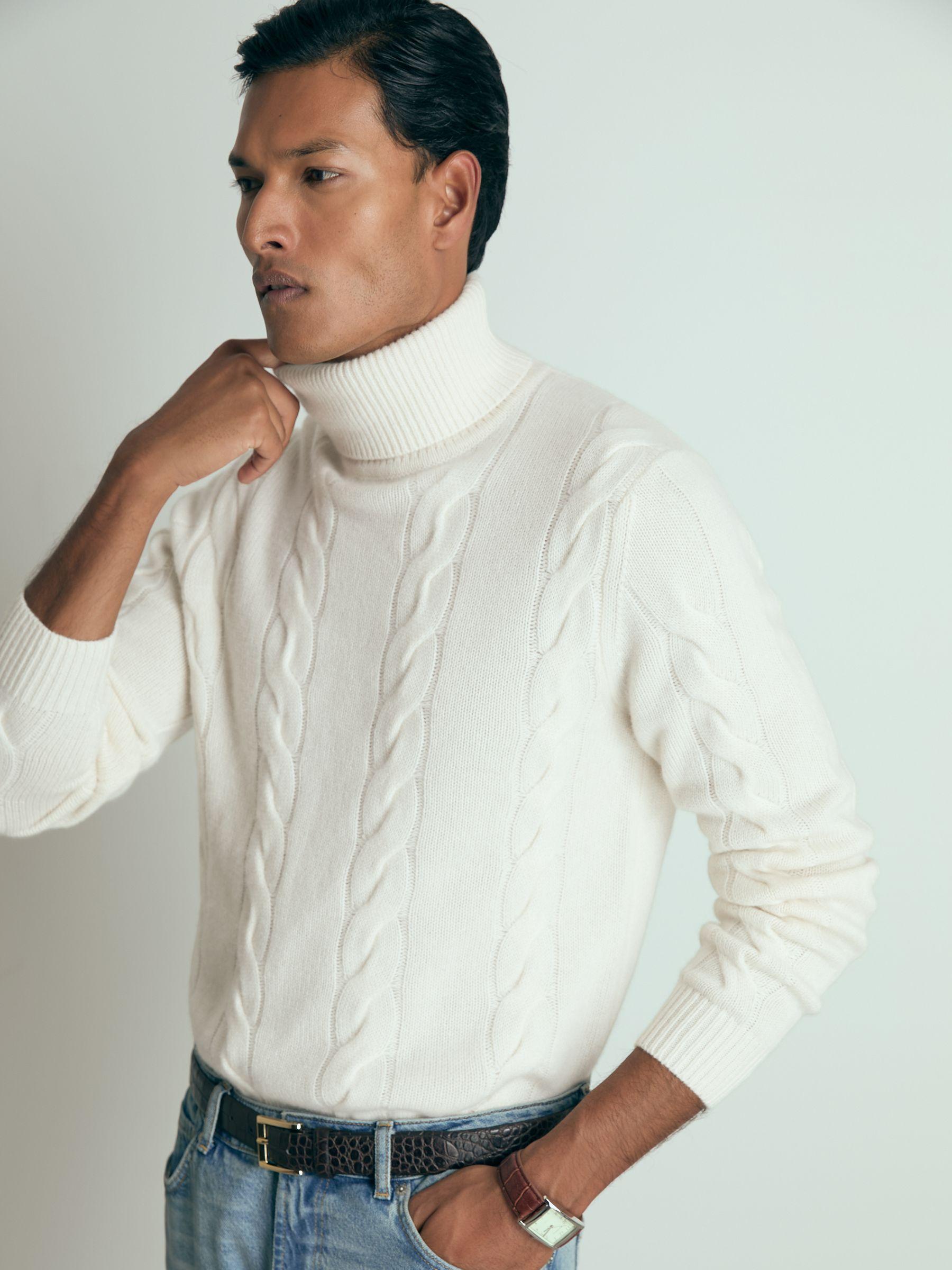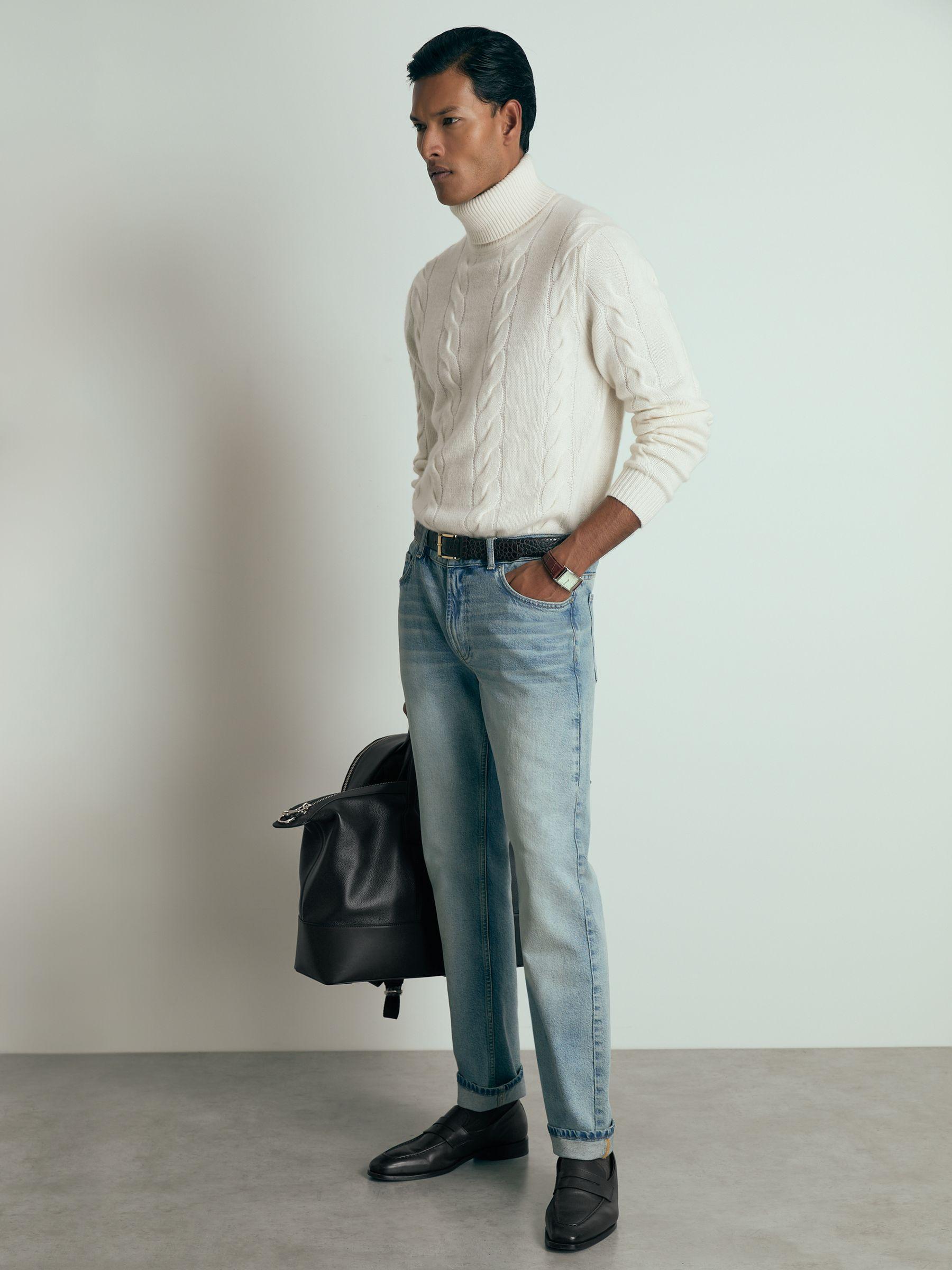 Add distinction to any look with the Smithers jumper, which is crafted from cashmere that’s selected for its exceptional softness. It’s patterned with timeless cables, then accented with close-fitting ribs at the hem, cuffs and generously proportioned roll neck. 100% cashmere. Ribbed roll neck, cuffs and hem. Reiss Atelier is an effortlessly modern collection of timeless wardrobe staples and occasion styles using the finest fabrics and tailoring techniques. Description: Measurements of model: 6ft2” / 189cm. The model is wearing a size M.
