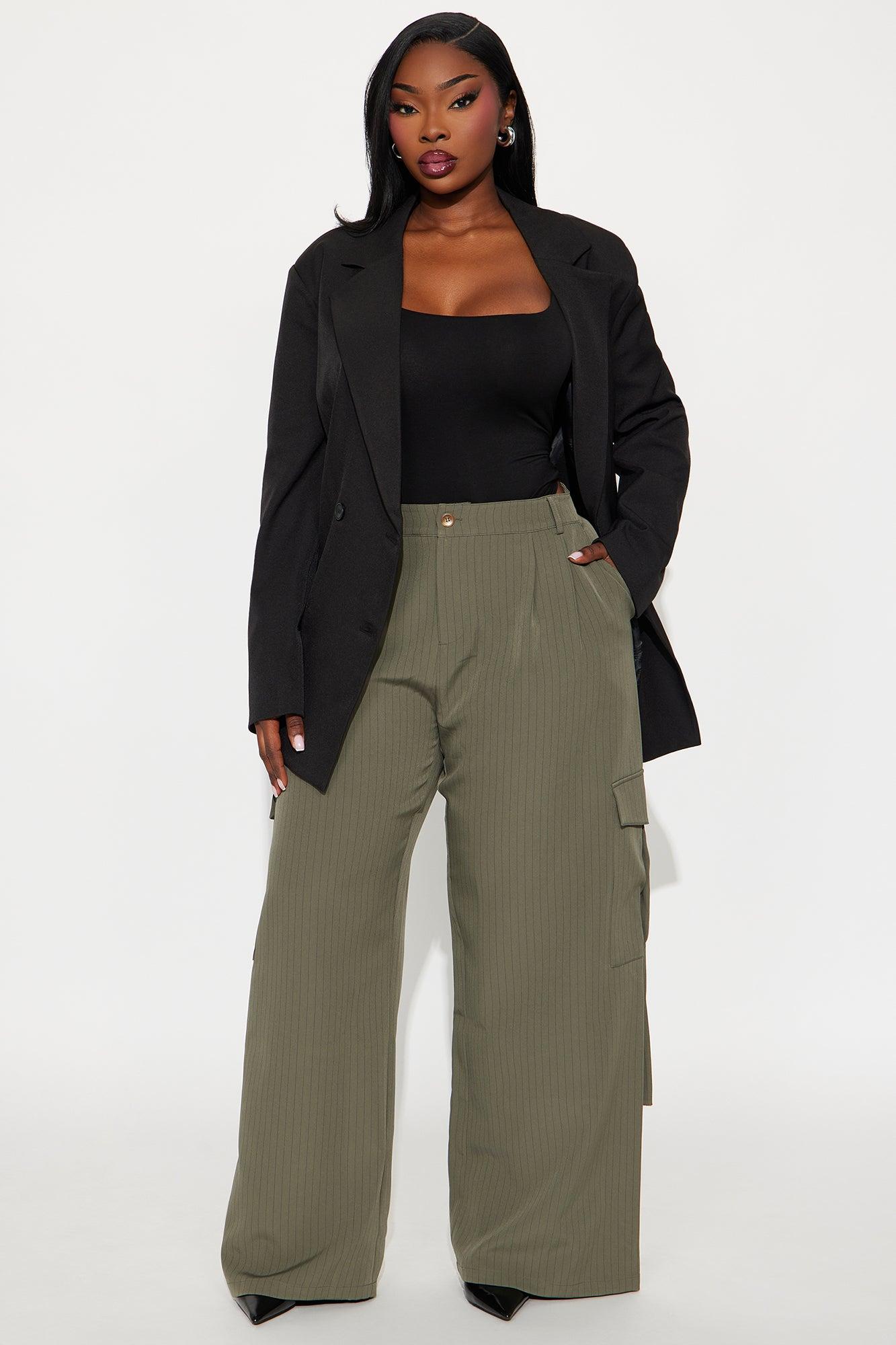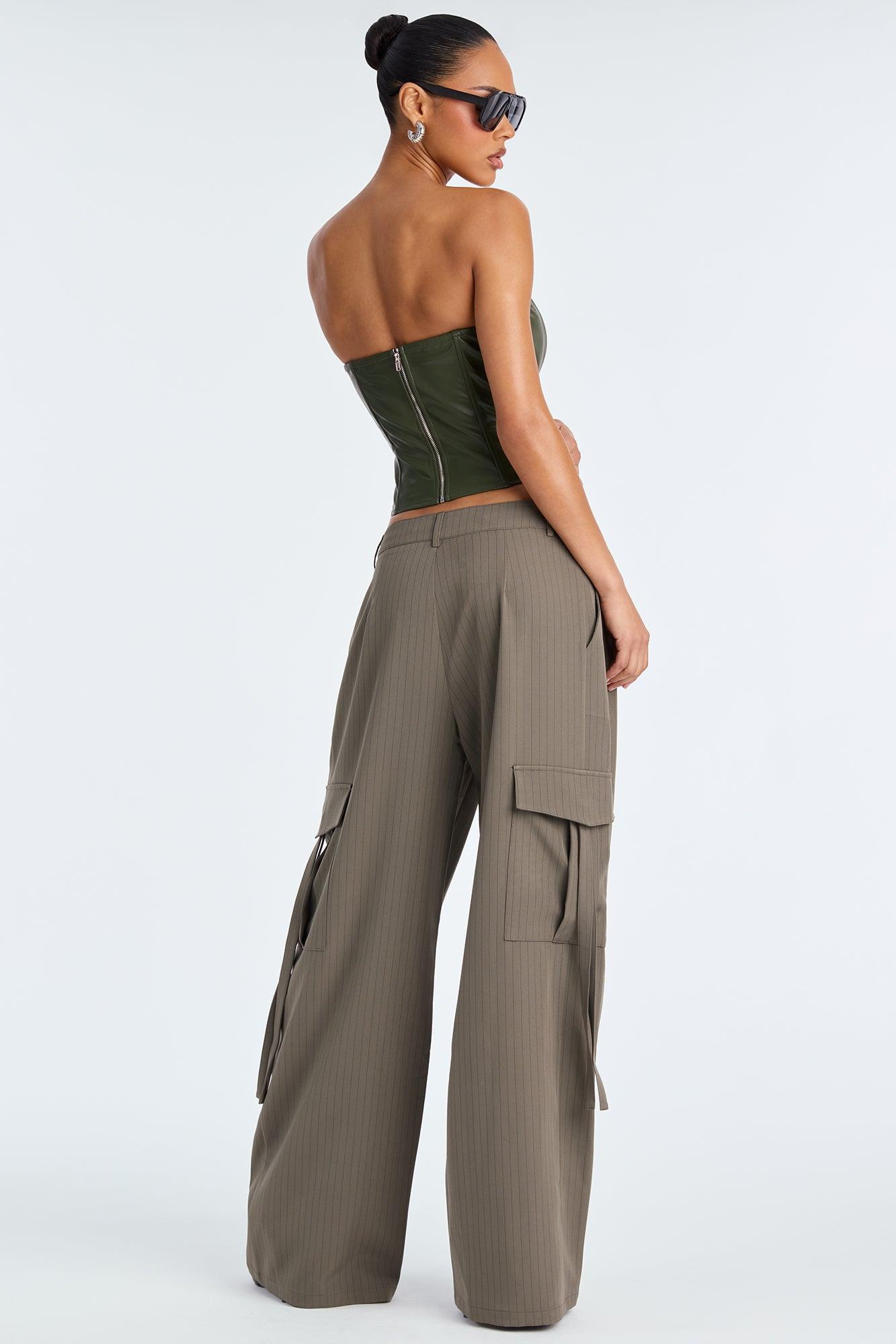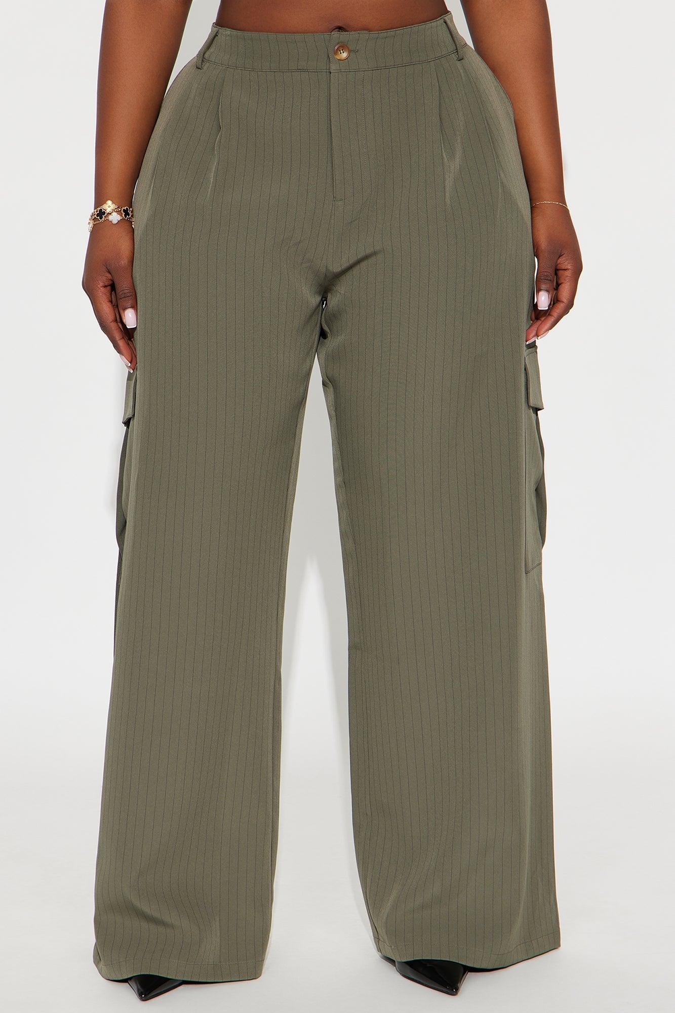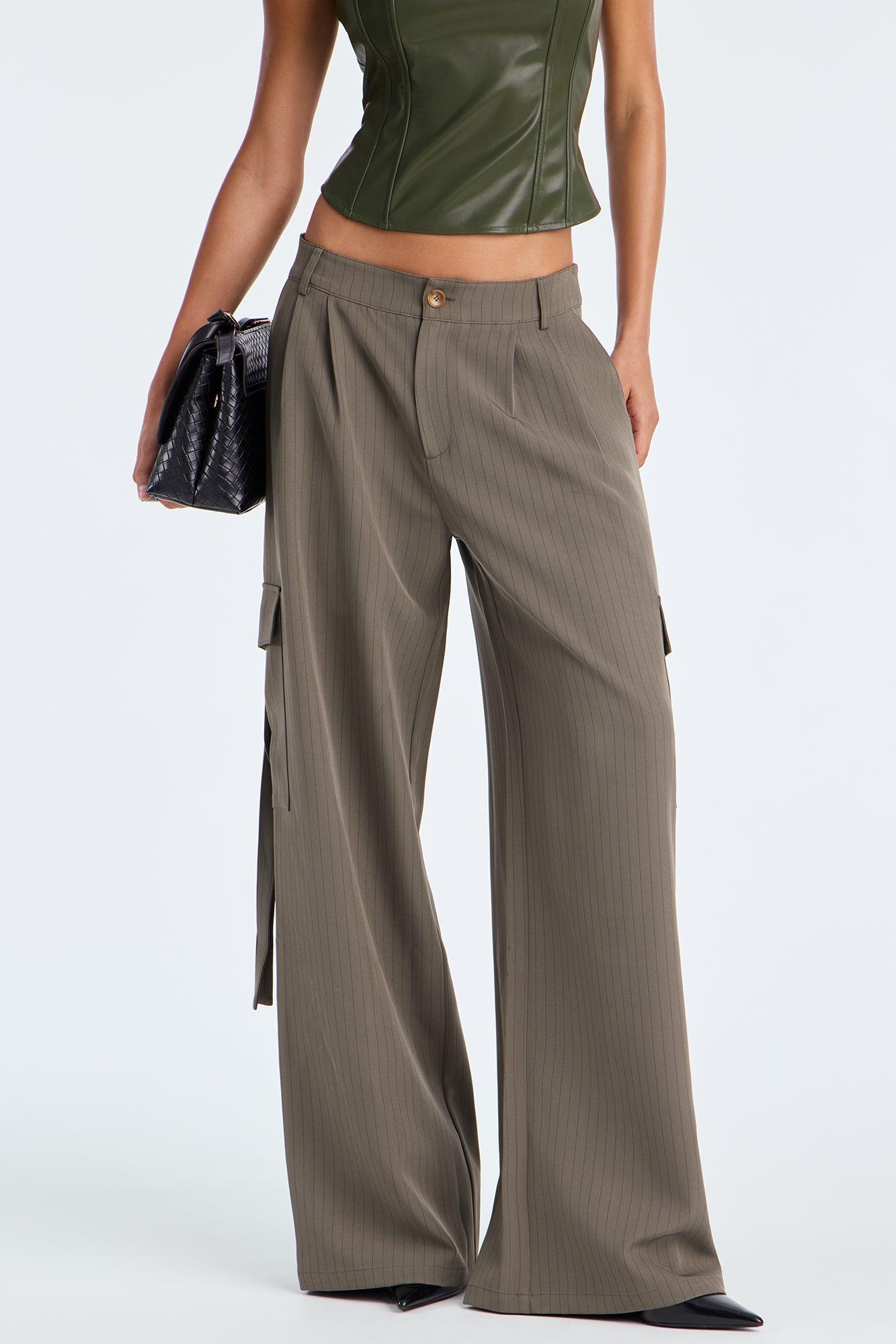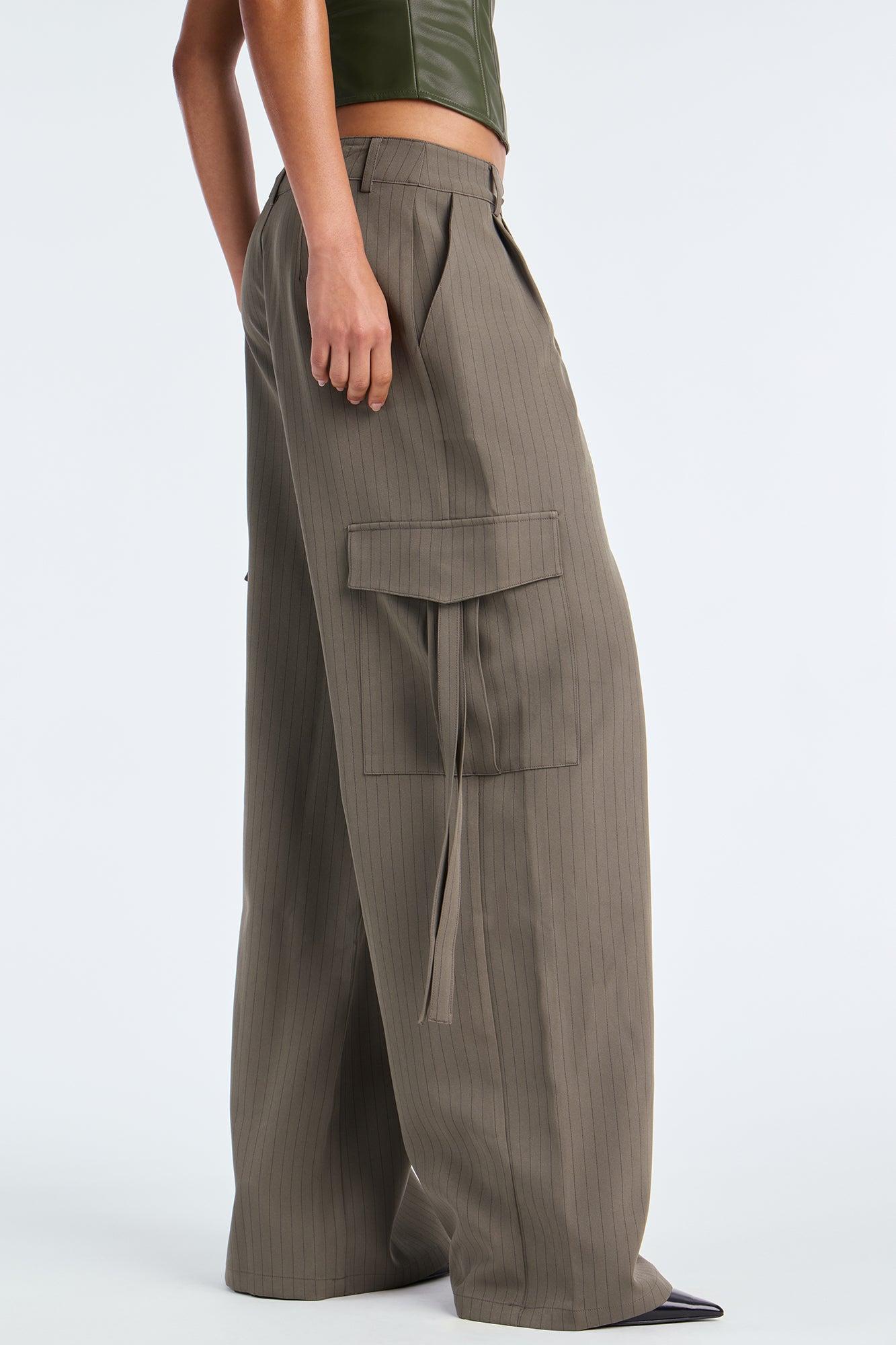 Atiya Pinstripe Wide Leg Cargo Pant 32″ - Olive Female