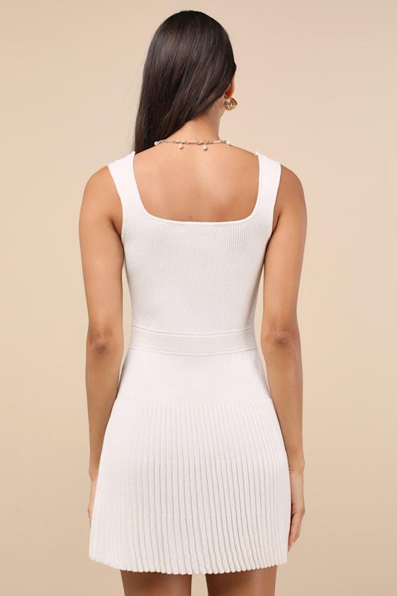 Chic handbags and strappy heels always pair perfectly with this summer sweater dress, featuring a stretchy ribbed knit construction that always flaunts the figure just right. Wide shoulder straps support a square neckline and a bodycon silhouette adorned with decorative gold-toned buttons for a luxe touch. Flirty mini hem completes the look.