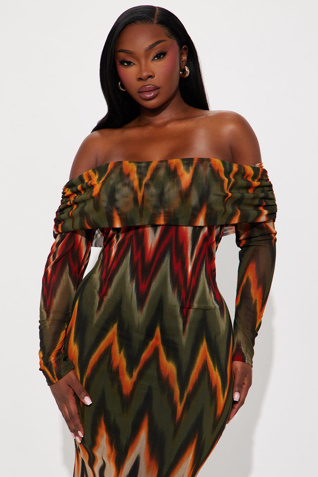 Audrey Printed Mesh Off Shoulder Maxi Dress - Olive/combo Female