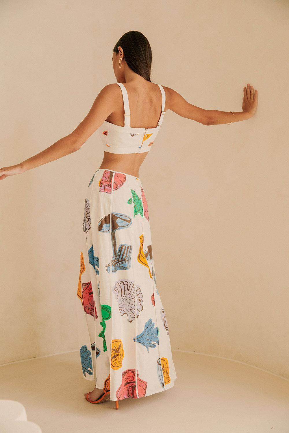 Introducing our exclusive By The Sea print, the Audrey Top is made from a natural cotton slub fabric and features contrast white trims, adjsutable straps and a cropped hem. Get the set with the Audrey Skirt and style with the Dia Heels! Designed exclusively by Sabo.
