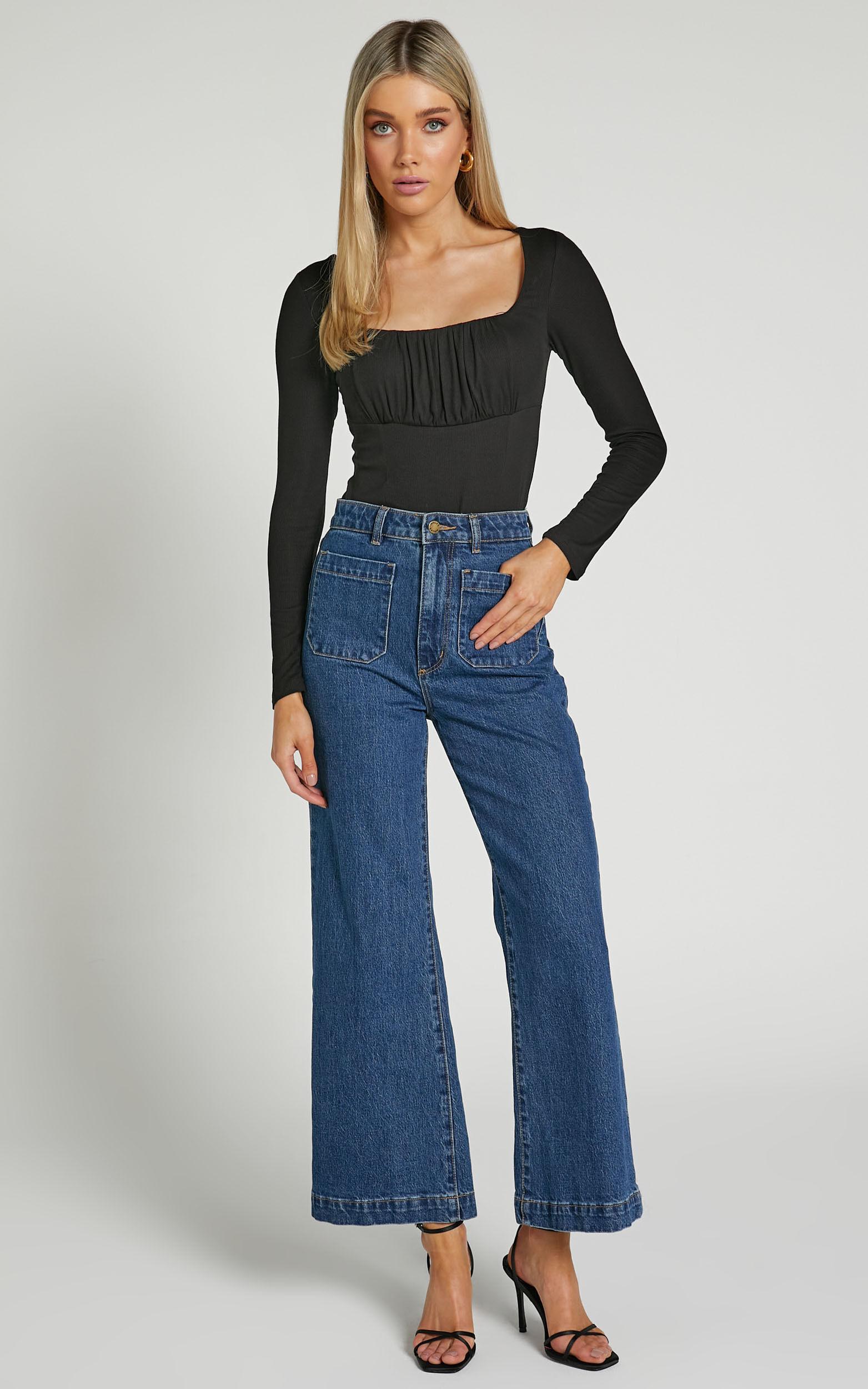Elevate your winter wardrobe with our Audrey Top in Black. This long sleeve square neck top features a ruched bodice that accentuates your curves and adds a touch of femininity to any outfit. Made from soft cotton, it's perfect for both casual and dressier occasions. Whether you're heading to brunch or hitting the town, this versatile piece is a standard must-have for every fashion-forward woman. Dress it up with high-waisted jeans and heels or keep it relaxed with leggings and sneakers - the choice is yours! Stay stylish all season long with our Audrey Top in Black.Product Details:Casual square necklineLong sleeve winter topMade from cotton fabricStandard length