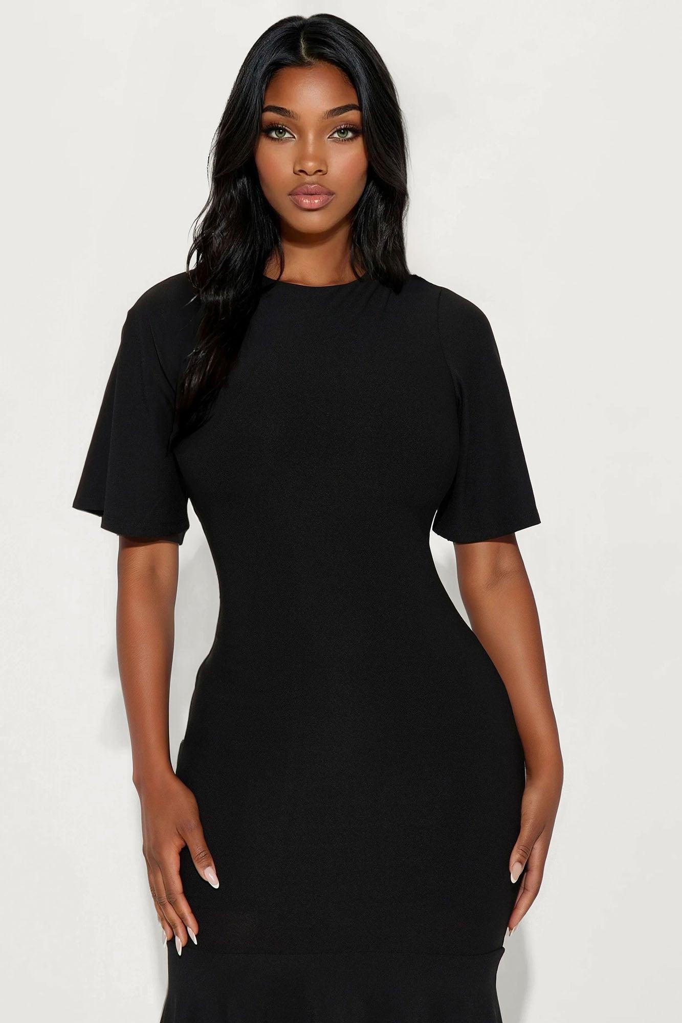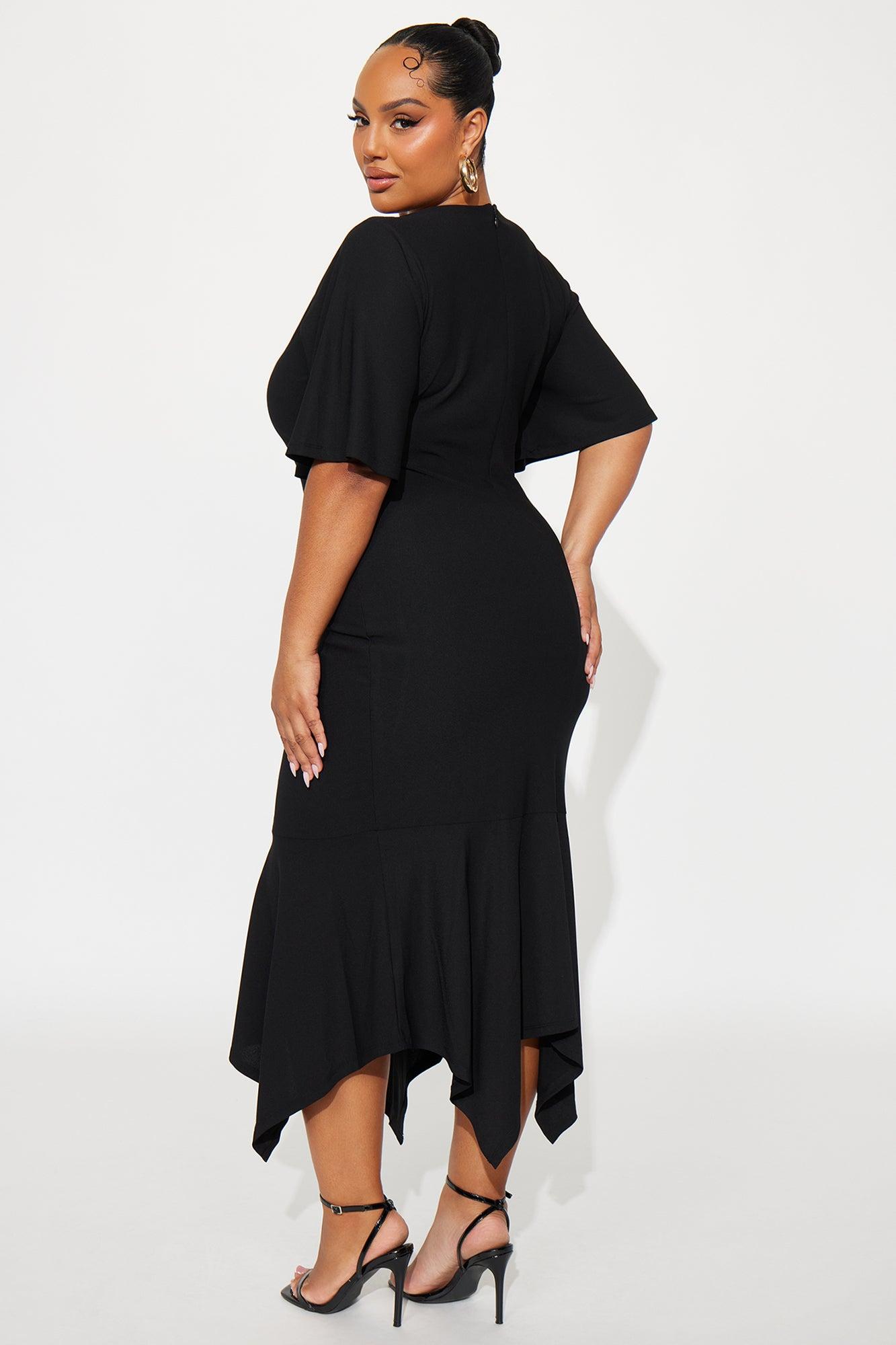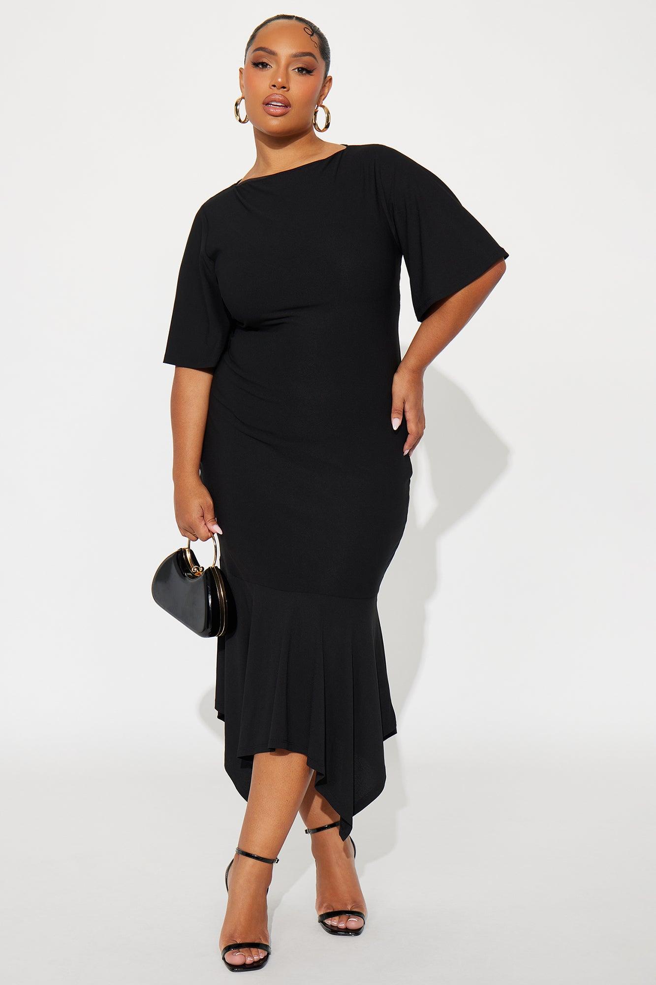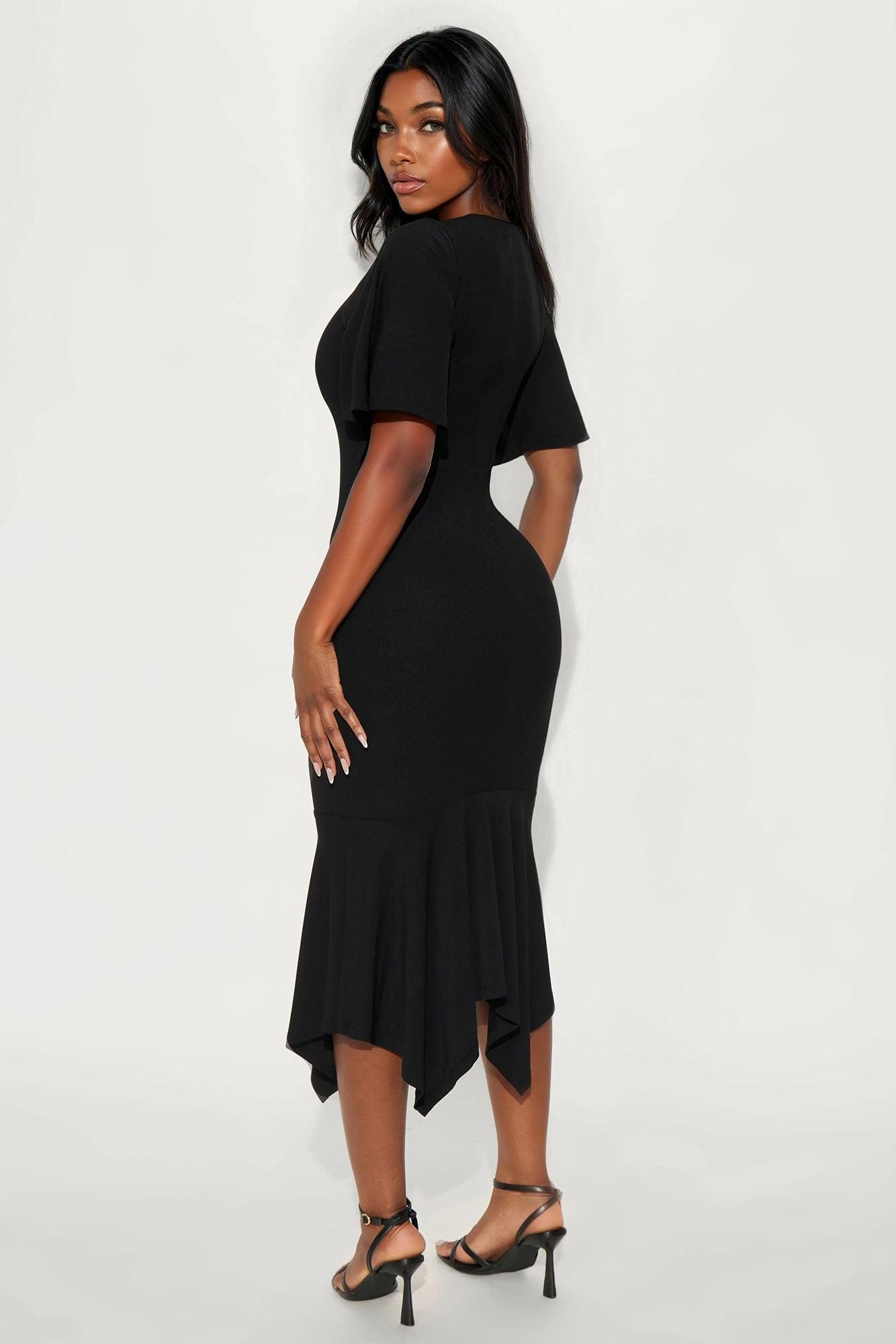 Audrina Asymmetrical Mermaid Midi Dress - Black Female
