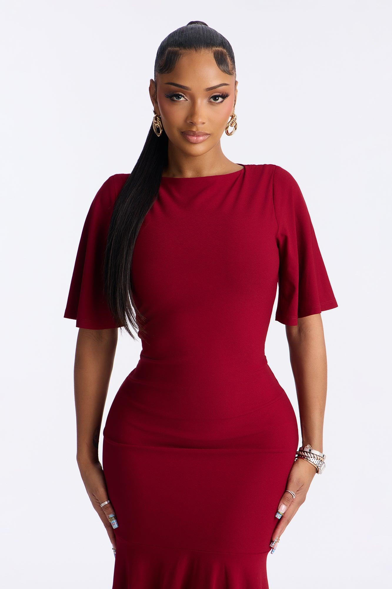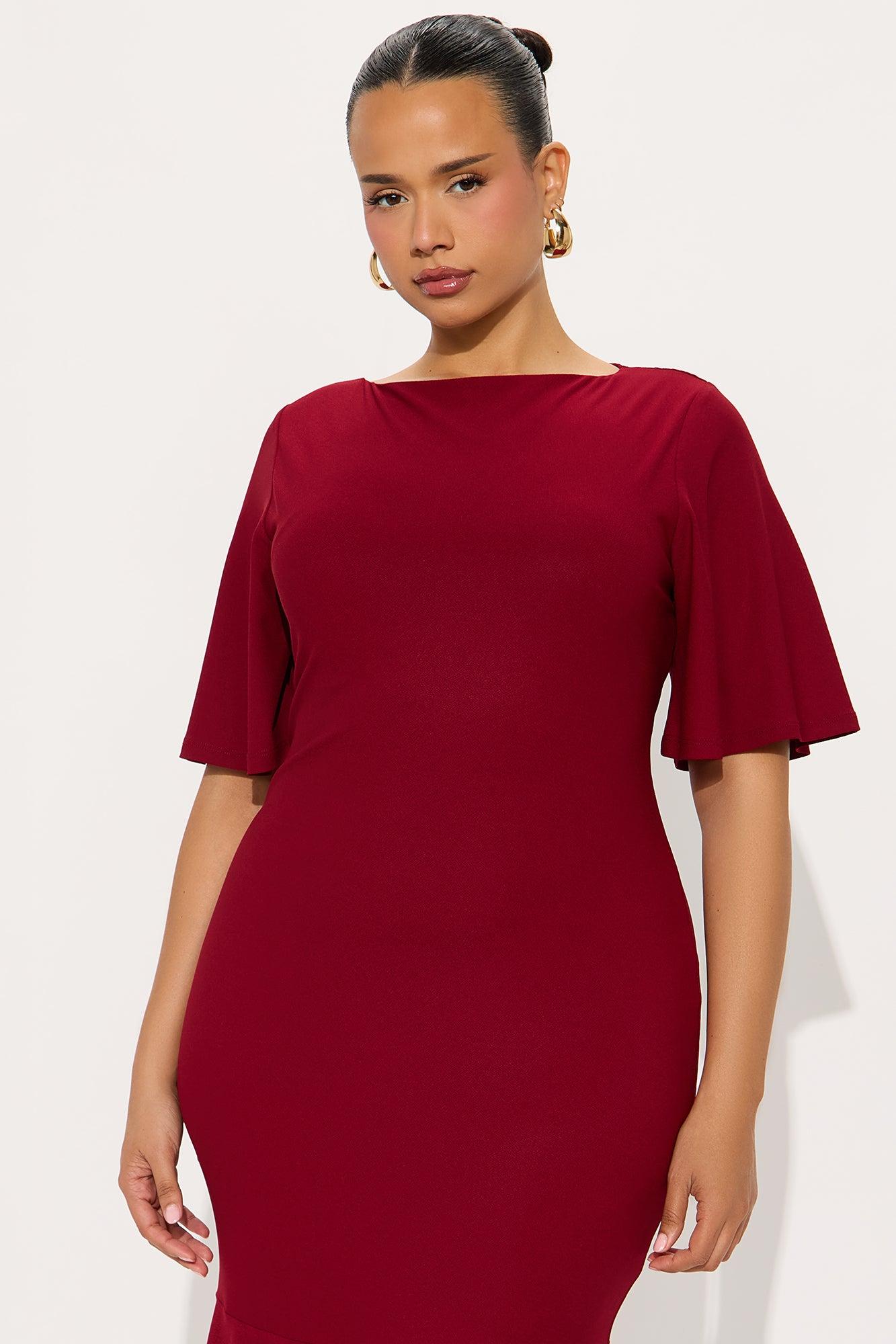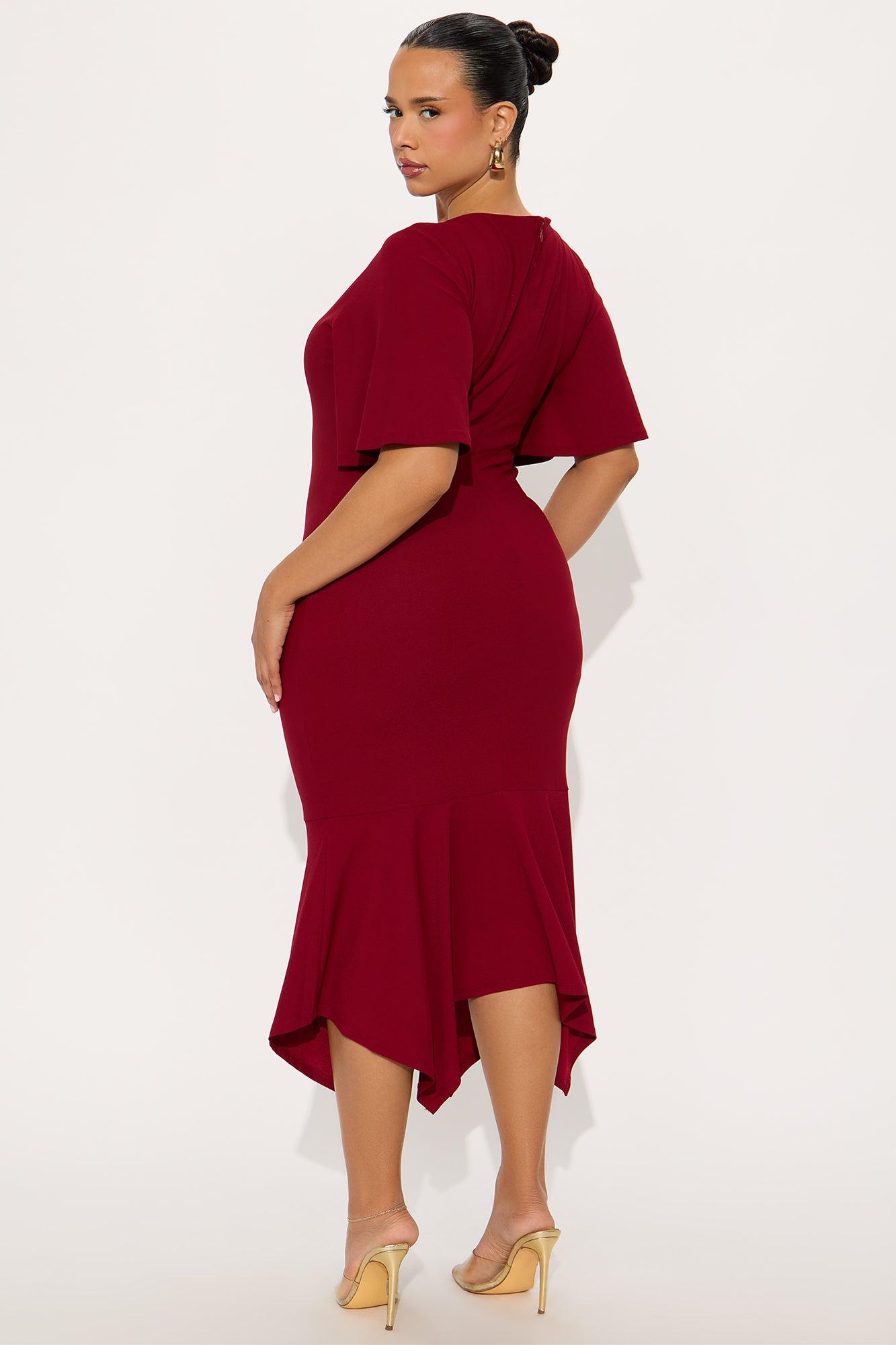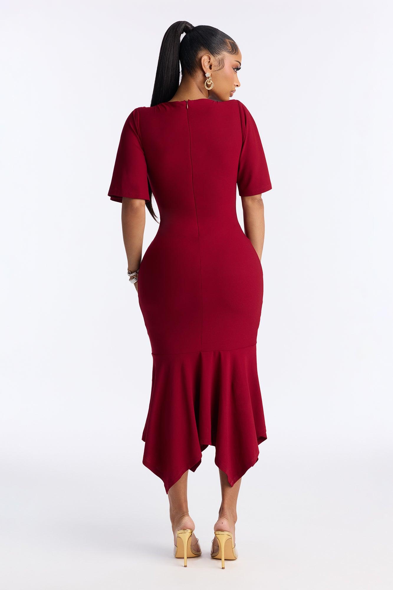 Audrina Asymmetrical Mermaid Midi Dress - Wine Female