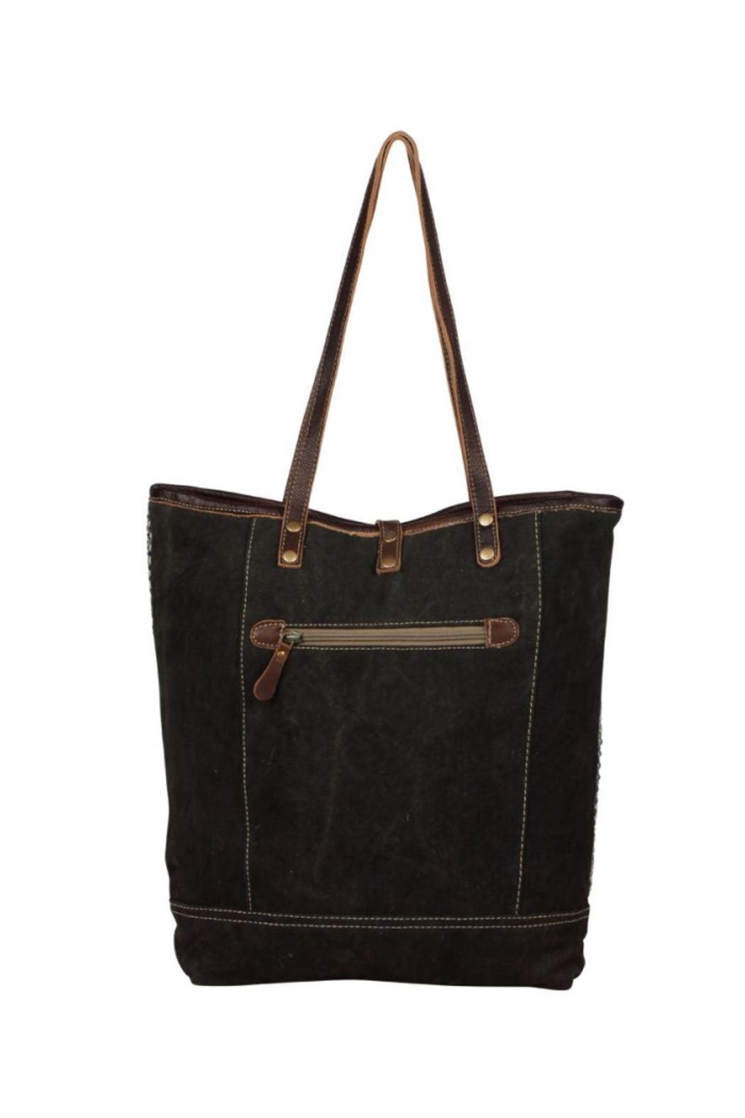 Beautiful tweed tote bag in canvas, leather and berber. This bag has room for your essentials with four total pockets; one back zipper, one interior zipper and two interior open. Top zipper closure. Item Width17", Depth 4", Height 17", Handle12".
