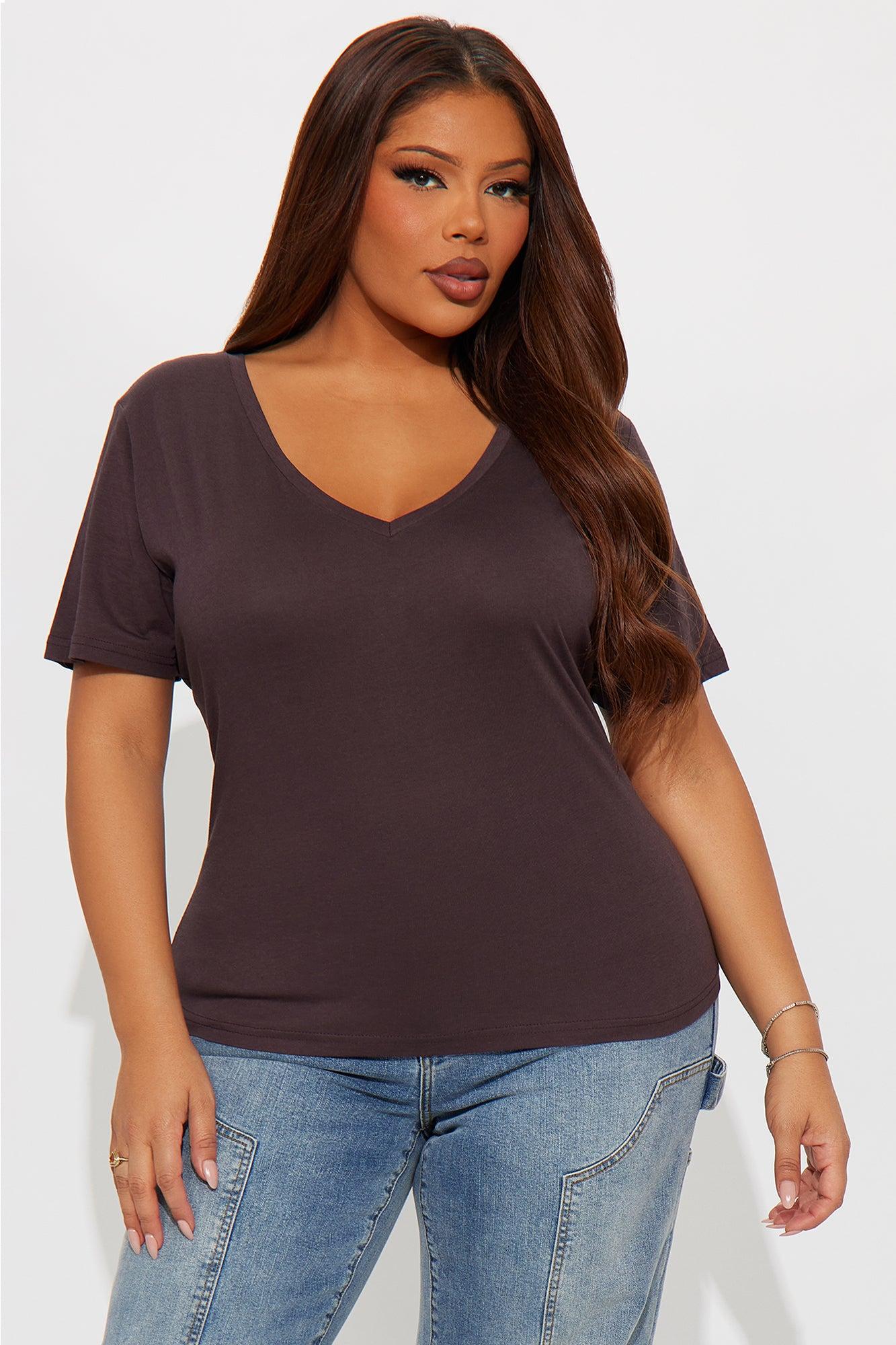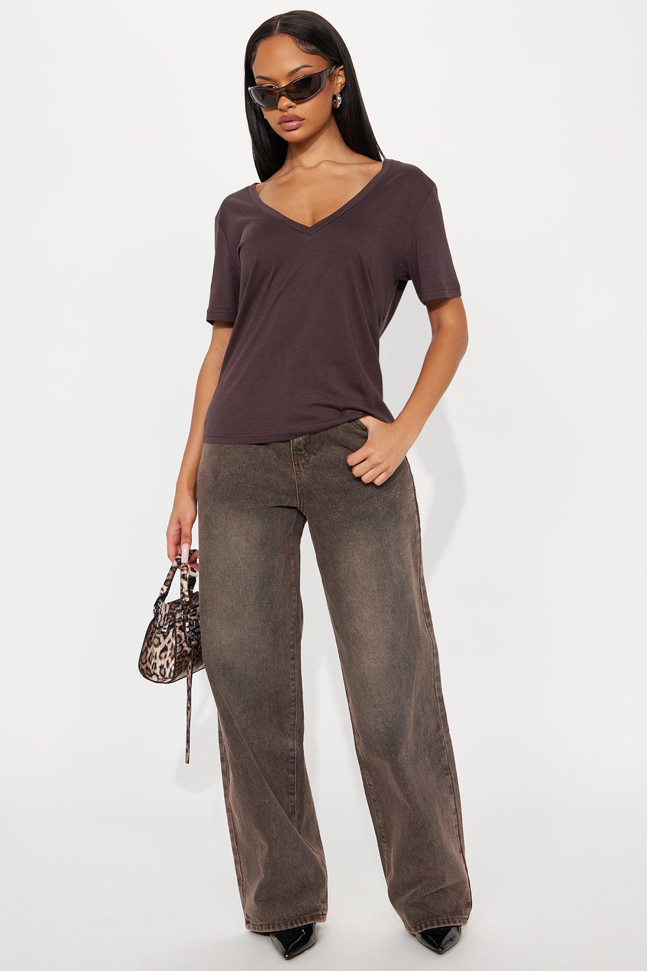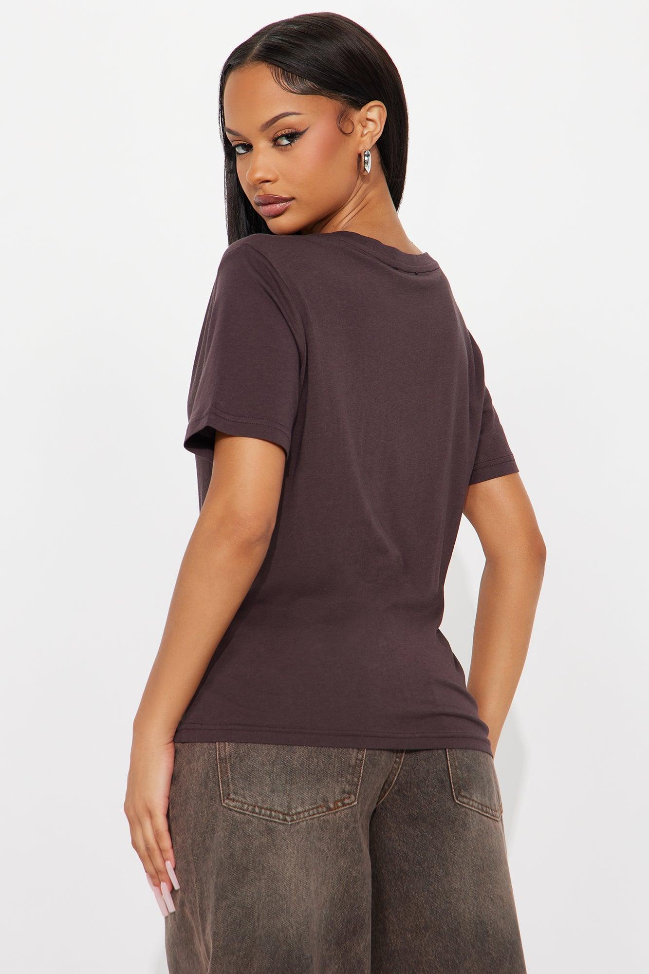 Ava V-Neck Tee - Brown Female