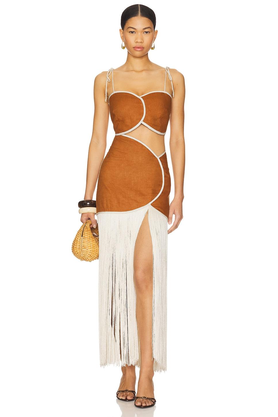 Shell: 100% linenLining: 97% cotton, 3% elastane. Dry in the shade. Hidden back zipper closure. Self-tie shoulder straps. Midweight linen. Item not sold as set. Made in Colombia. Revolve Style No. AULU-WS13. Manufacturer Style No. HST001.