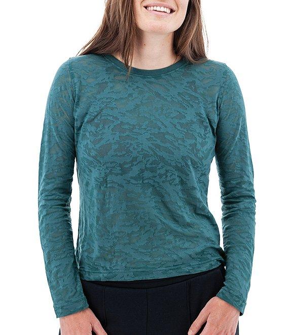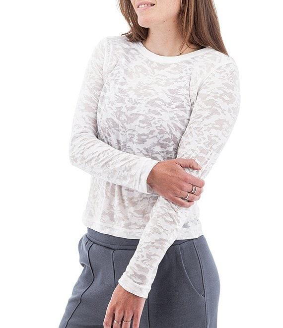 Aventura Ambrosia Ribbed Knit Burnout Crew Neck Long Sleeve Fitted Top
