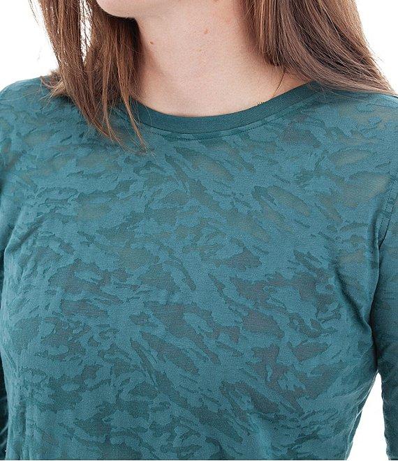 From Aventura, this top features: Ribbed knit fabrication Crew neckline Burnout long sleeves Fitted fit Straight hemline Pullover construction Approx. 24" length Machine wash Imported.