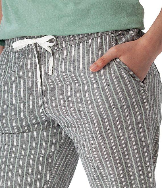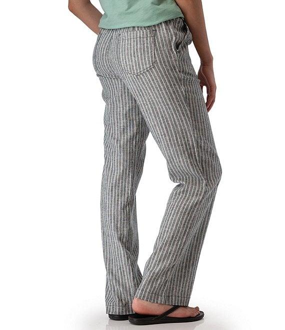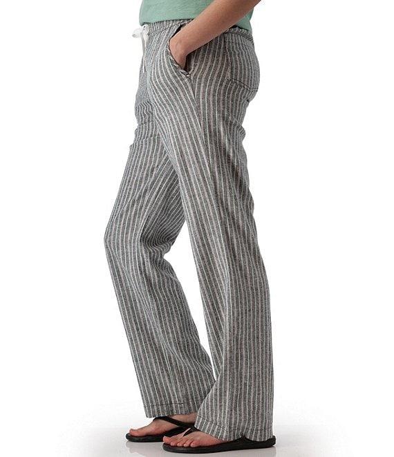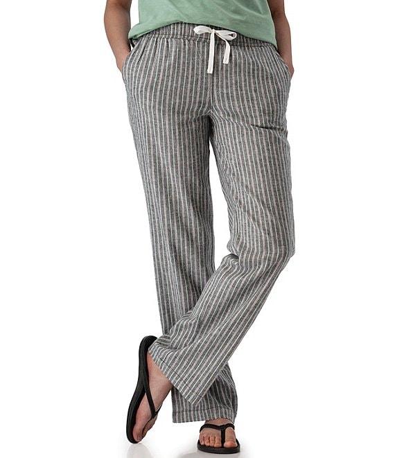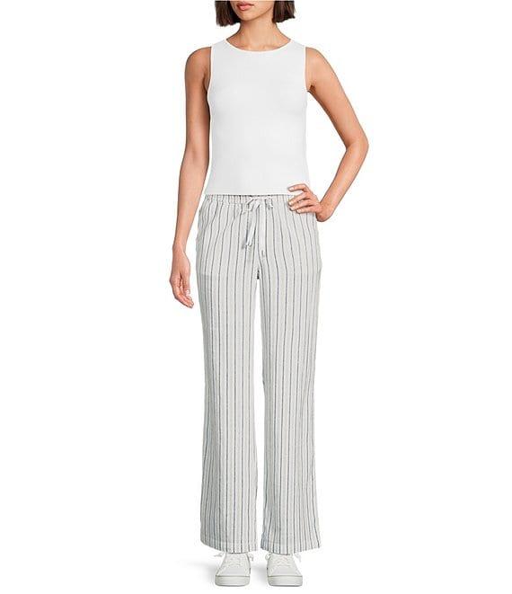 From Aventura, these pants feature: Woven fabrication Flat front silhouette Stripe print Mid rise waist Side seam pockets Back patch pocket Wide leg Pull-on drawstring closure Approx. 31" inseam Hemp/TENCEL lyocell/spandex plain weave yarn-dyed strip/woven Machine wash Imported.