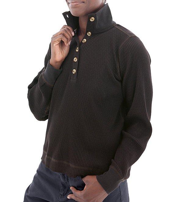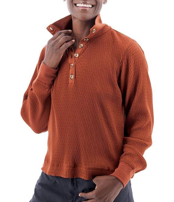 From Aventura, this top features: Organic cotton fabrication Henley silhouette Stand collar neckline Long sleeves Rib knit on collar and cuffs Button front placket Relaxed fit Straight hemline Pullover construction Approx. 25" length Organic cotton Machine wash Imported.
