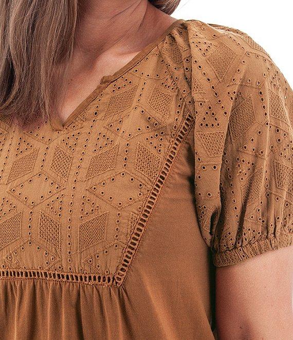 Aventura Shelle Organic Cotton Blend Woven Eyelet Schiffli Embroidered V-Notch Neck Dress Product Image