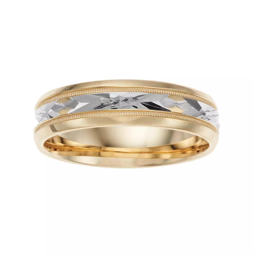 Define your love with this striking and contemporary wedding band, featuring a diamond engraved inlay and beveled edges.RING DETAILS Width: 0.24-in. Metal: 14k gold Plating: rhodium Packaging: boxed Rings are sized upon order. For this reason, please expect an actual delivery date later than the date listed on your order confirmation e-mail.Please note, due to the high value of this item, a signature may be required upon delivery. Size: 11.50. Color: Yellow. Gender: male. Age Group: adult.