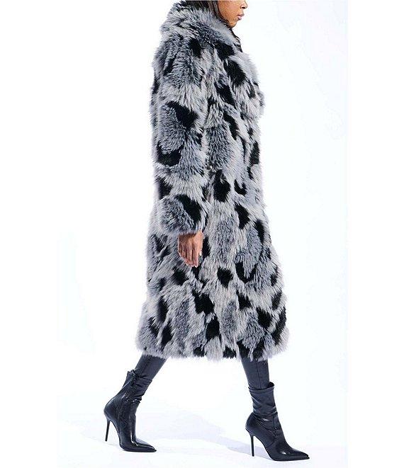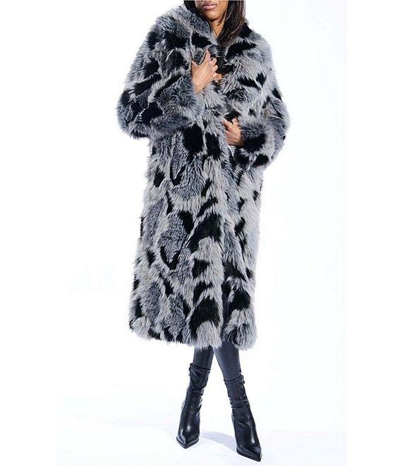 From Azalea Wang, this coat features: Faux fur fabrication Trench coat silhouette Raccoon pattern Oversize shawl collared neckline Long sleeves Two front pockets Oversize fit Fully lined Straight hemline Hook and eye closure Approx. 46" length Polyester Dry clean Imported