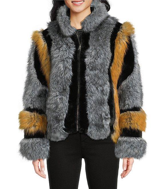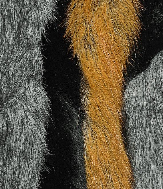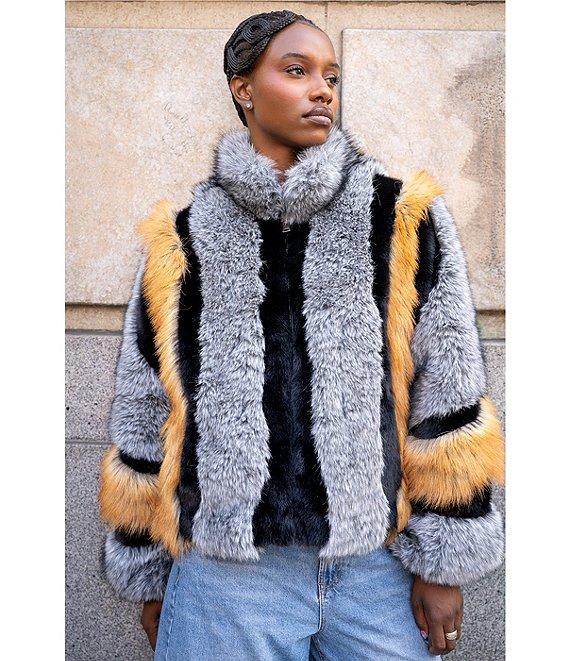 From Azalea Wang, this coat features: Faux fur fabrication Single breasted silhouette Colorblock stripe pattern Stand collar neckline Long sleeves Front pockets Heavyweight Oversize fit Fully lined Straight hemline Zip front closure Approx. 34" length Polyester Dry clean Imported.
