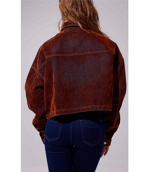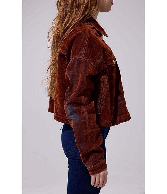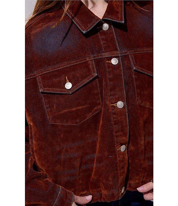 From Azalea Wang, this jacket features: Denim fabrication Point collar neckline Long sleeves Two chest pockets Side seam pocket Belted Internal drawcord Relaxed fit Straight hemline Button front closure Approx. 21" length Polyester Dry clean Imported.