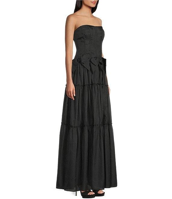 B. Darlin Organza Strapless Bustier Bow Front Tiered Ballgown