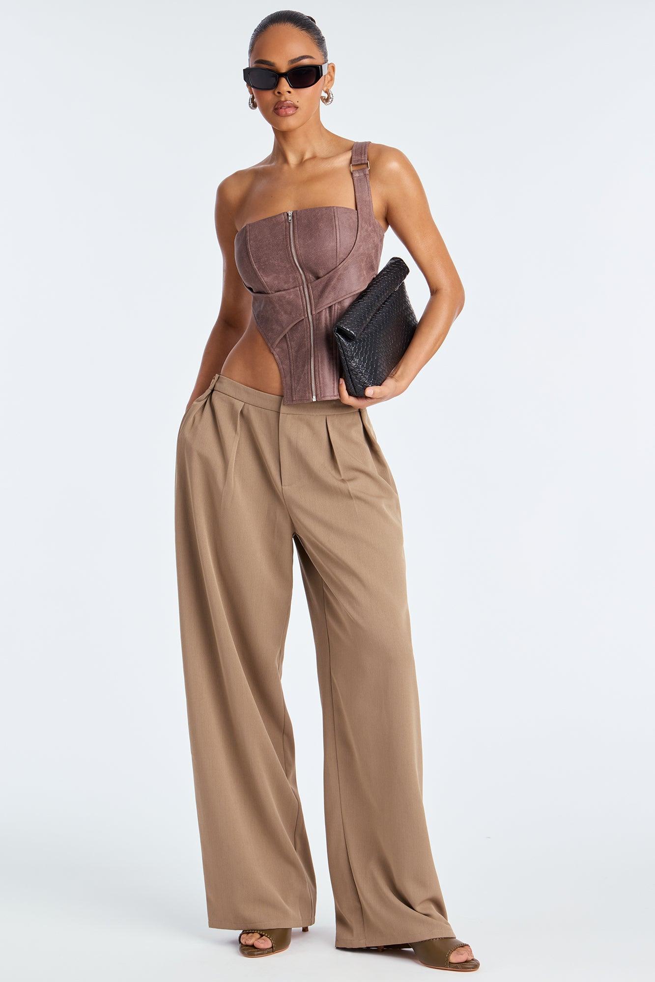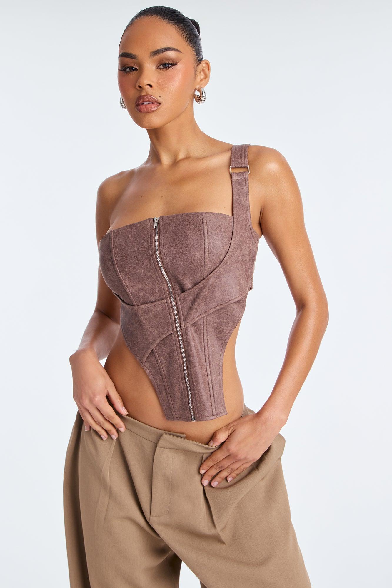 Bad Intentions One Shoulder Faux Leather Top - Brown Female