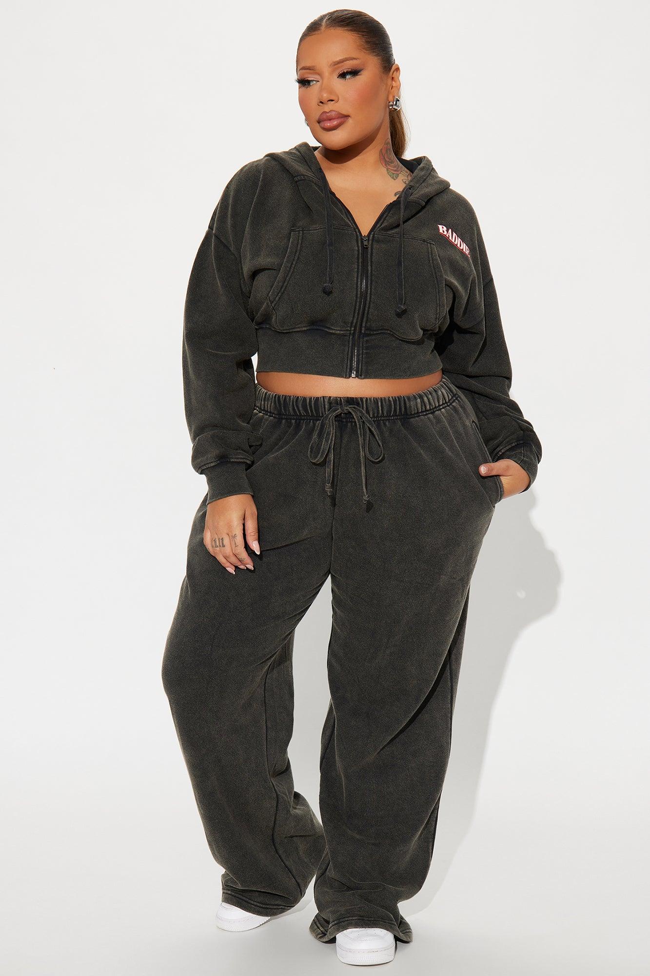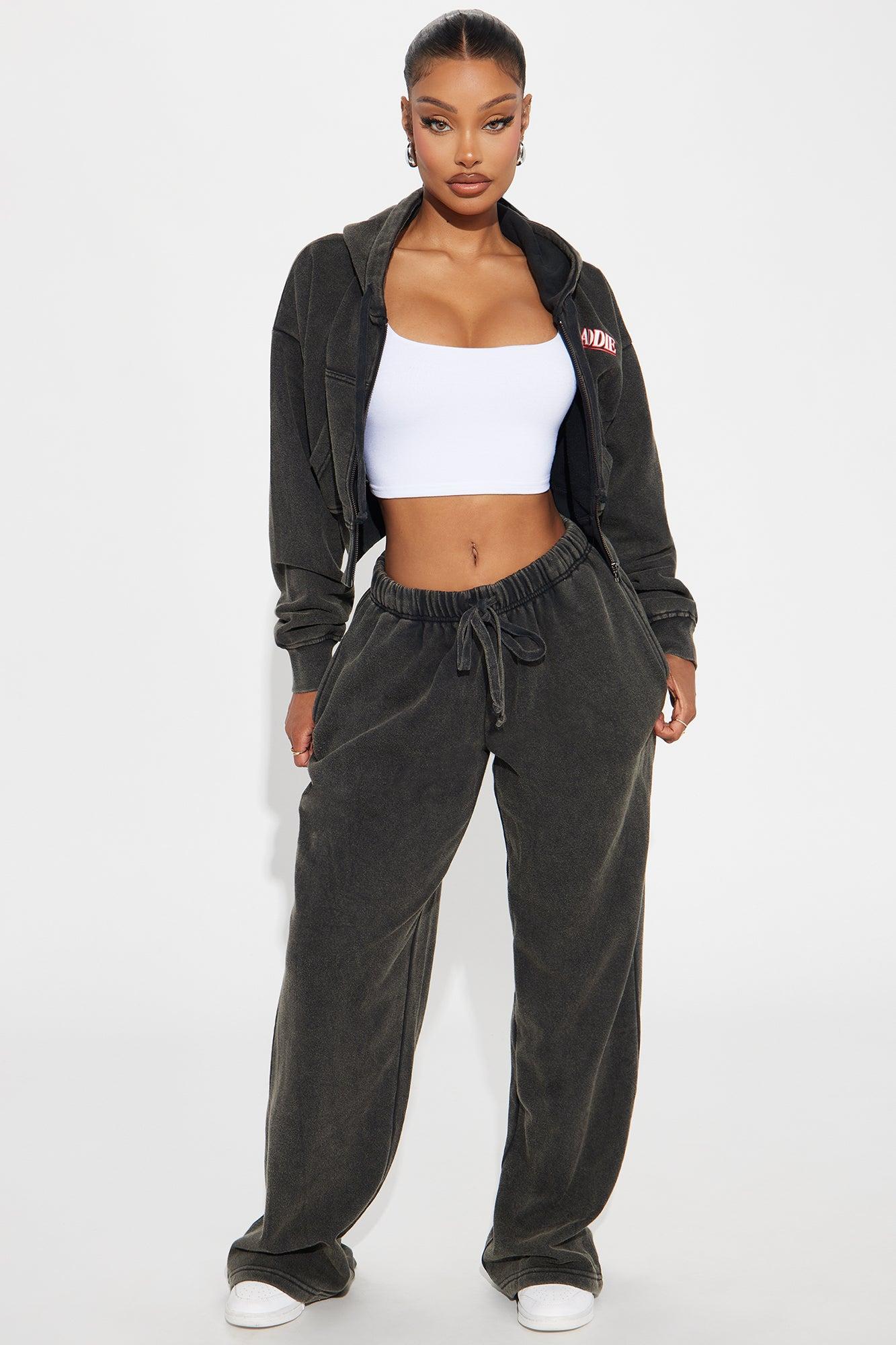 Available In Black Wash. Wide Leg Pant Elastic Drawstring Waistband Front And Back Screen Washed Stretch Pair To "Baddie Washed Front Zip Hoodie" Disclaimer: Due To The Specialized Wash Process, Each Garment Is Unique. 60% Cotton 40% Polyester Imported
