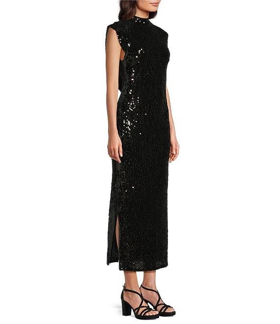 Badgley Mischka Ella Sequin Mock Neck Cap Sleeve Maxi Dress