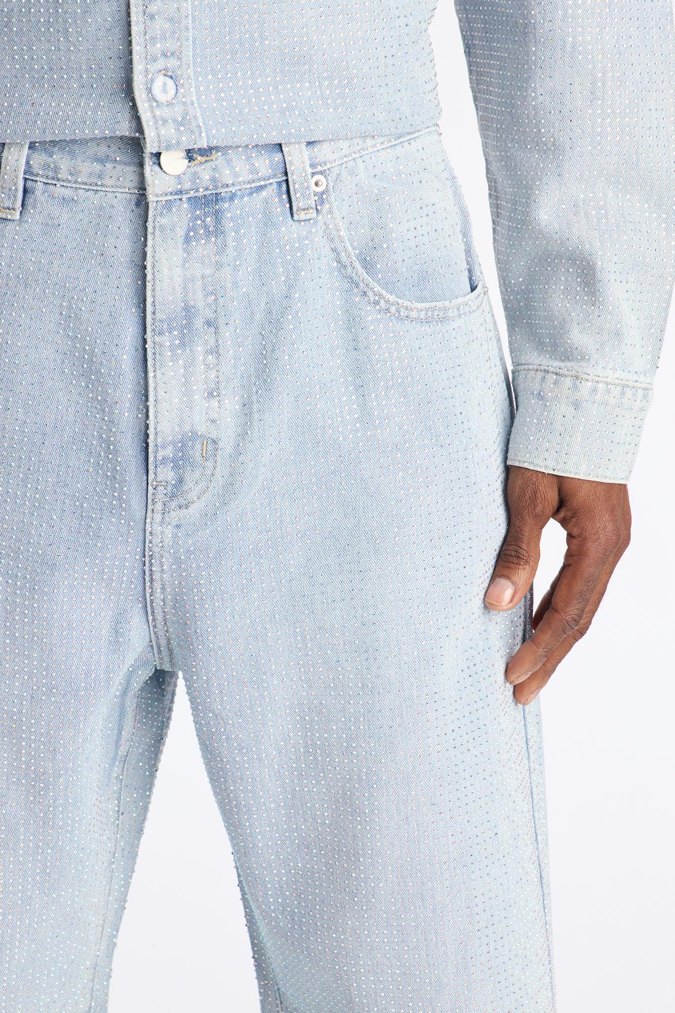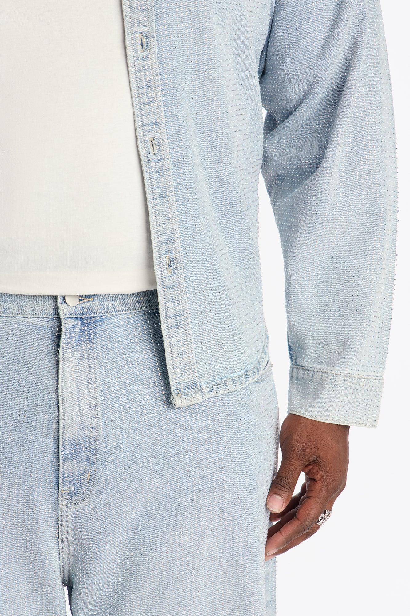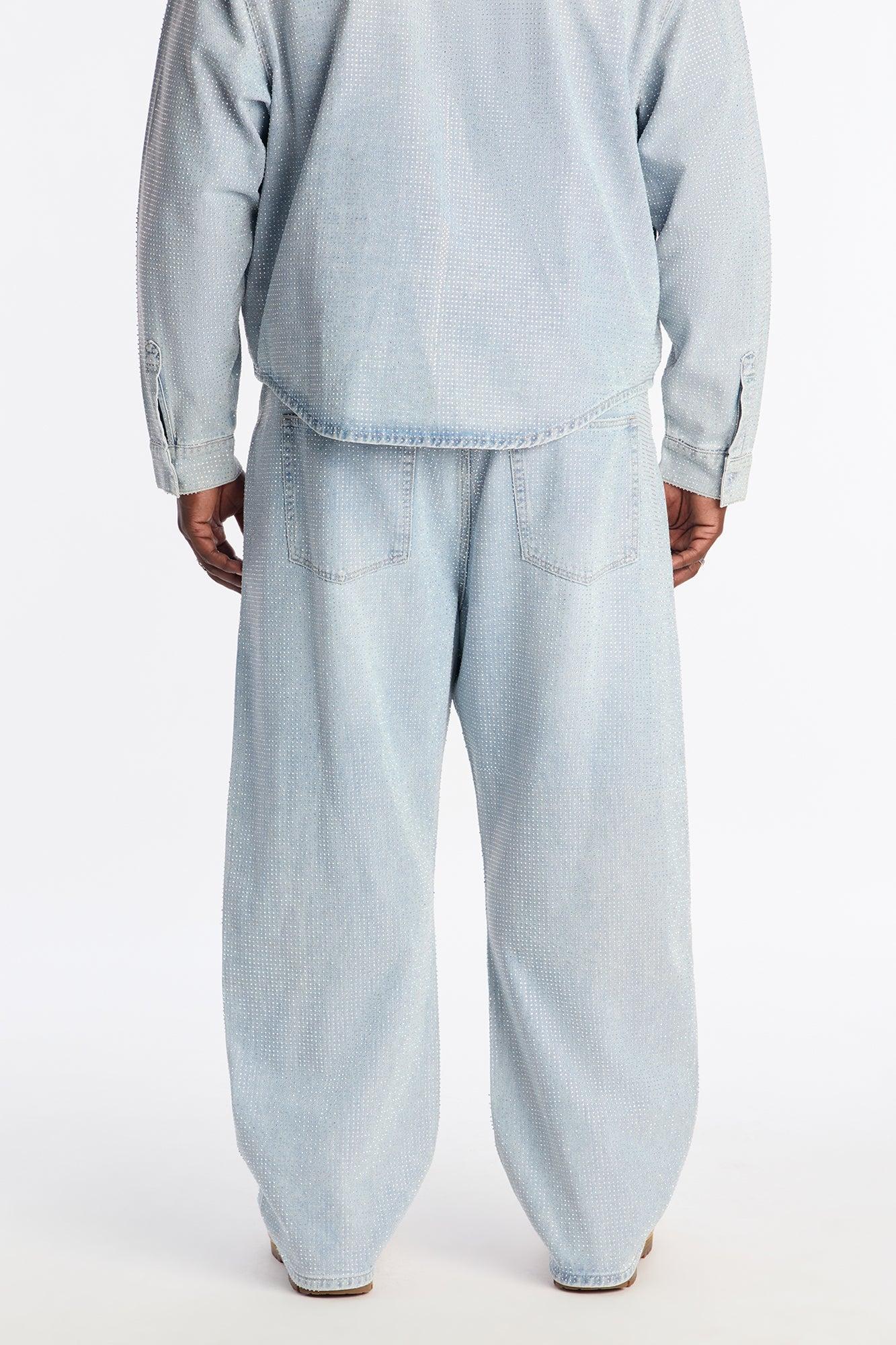 Baggy Jeweled Diamond Drift Jean - Light Wash