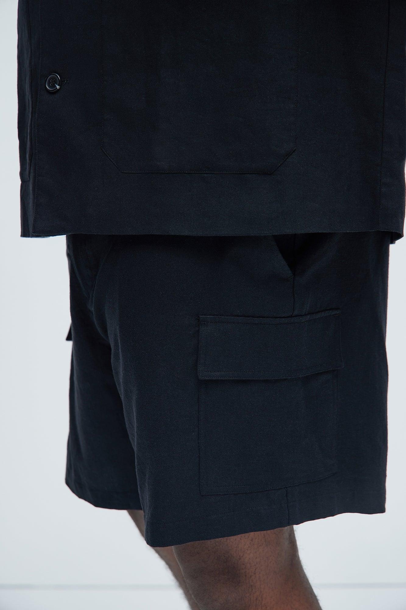 Available In Black. Fixed Waist Zip Fly Button Closure Side Pockets Cargo Pockets Pair With "Bahamas Linen Chore Jacket" Pair With "Bahamas Linen Shirt" Pair With "Bahamas Linen Classic Button Up Shirt" Pair With "Bahamas Linen Cuban Shirt" Shell: 55% Linen 45% Cotton Lining: 100% Polyester Imported