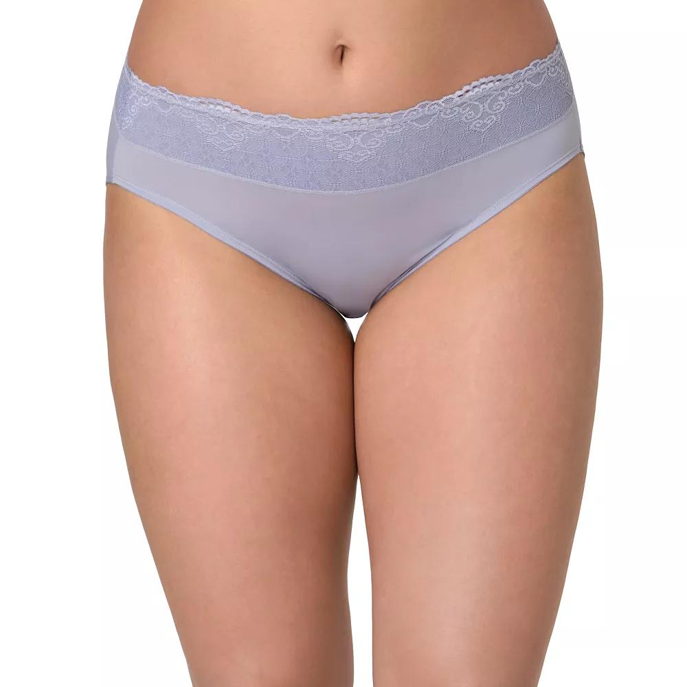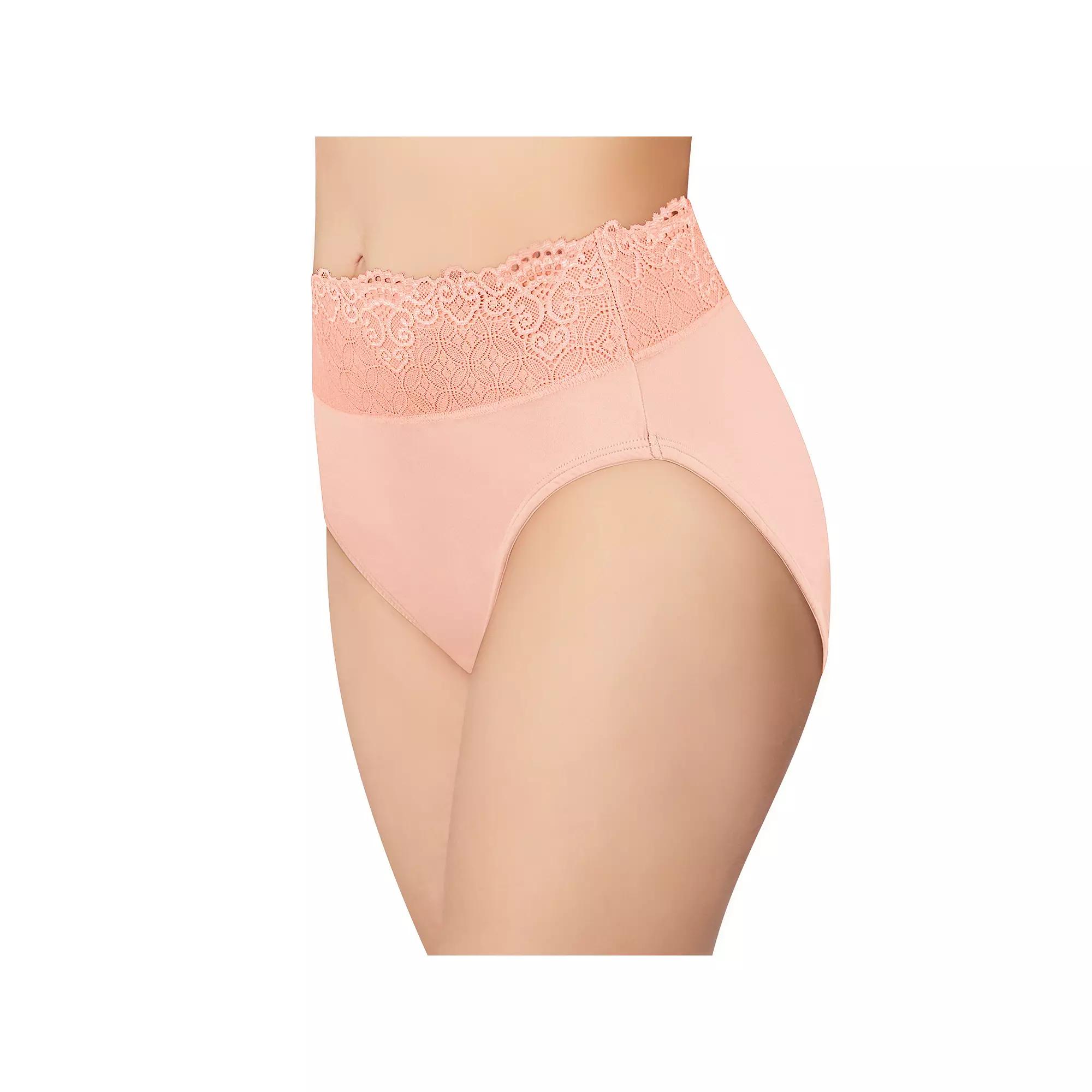 No more panty lines! Passion For Comfort® hi-cut underwear combines seamless, full-coverage styling with a lay-flat Smooth U® waistband for a no-show finish under clothes. The soft microfiber material with 4-way stretch gently hugs your body, holding its shape while allowing effortless movement. Click on this INTIMATES & SLEEPWEAR Guide to find the perfect fit and more! - https://www.kohls.com/feature/womens-sleepwear-and-intimates-guide.jsp.. Seamless design ensures no visible panty lines for a sleek appearance under clothing, Wide, lined lace waistband provides a no-pinch, no-dig fit, Hi-cut panty style offers full back coverage for comfort and confidence, Crafted from soft, smoothing microfiber that gently hugs your curves, No-ride-up design stays securely in place all day, Four-way stretch fabric ensures a flexible and comfortable fit, Style no. DFPC62. FIT & SIZING. Hi-cut. FABRIC & CARE. 78% Nylon, 22% Spandex. 100% cotton gusset lining, Machine wash, Imported. Bali Women's Single Size Panty Size Chart. Size. 5/S. 6/M. 7/L. 8/XL. 9/2X. 10/3X. Dress/Pant Size. 4 - 6. 8 - 10. 12 - 14. 14 - 16. 16 - 18. 18 - 20. Hip (inches). 36" - 37". 38" - 39". 40" - 41". 42" - 43". 44" - 45". 46" - 47". Size chart is a general guide. It may include sizes that are unavailable for this item. Color: Ancg Silv. Gender: female. Age Group: adult. Material: NYLON BLEND.