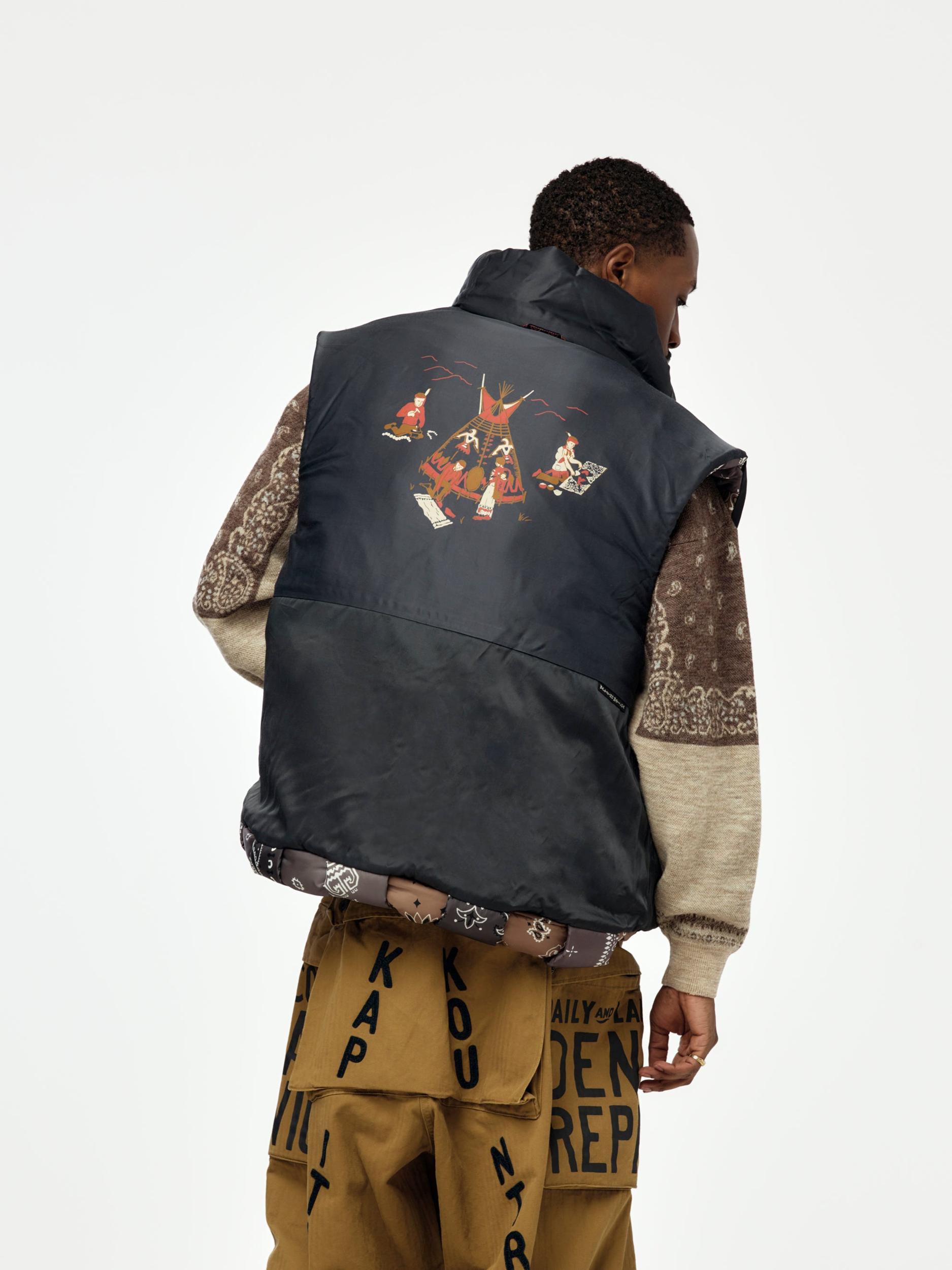 The Bandana Nylon KEEL Weaving Vest fuses technical nylon construction with KAPITAL’s layered textile storytelling. Featuring bandana-inspired patterning and a utilitarian silhouette, it’s built for functional layering with visual depth. A statement piece rooted in craft, not excess. SKU: K2511SJ196