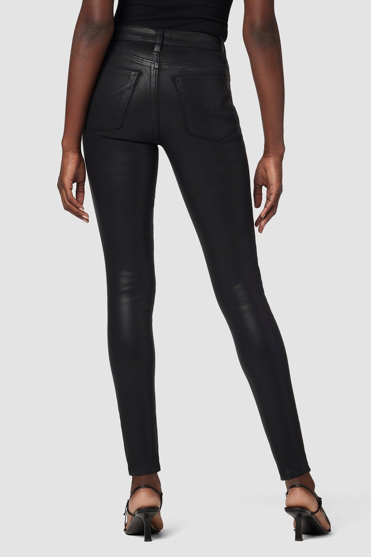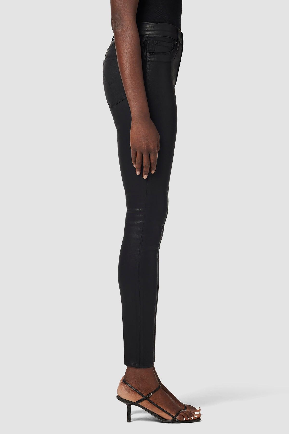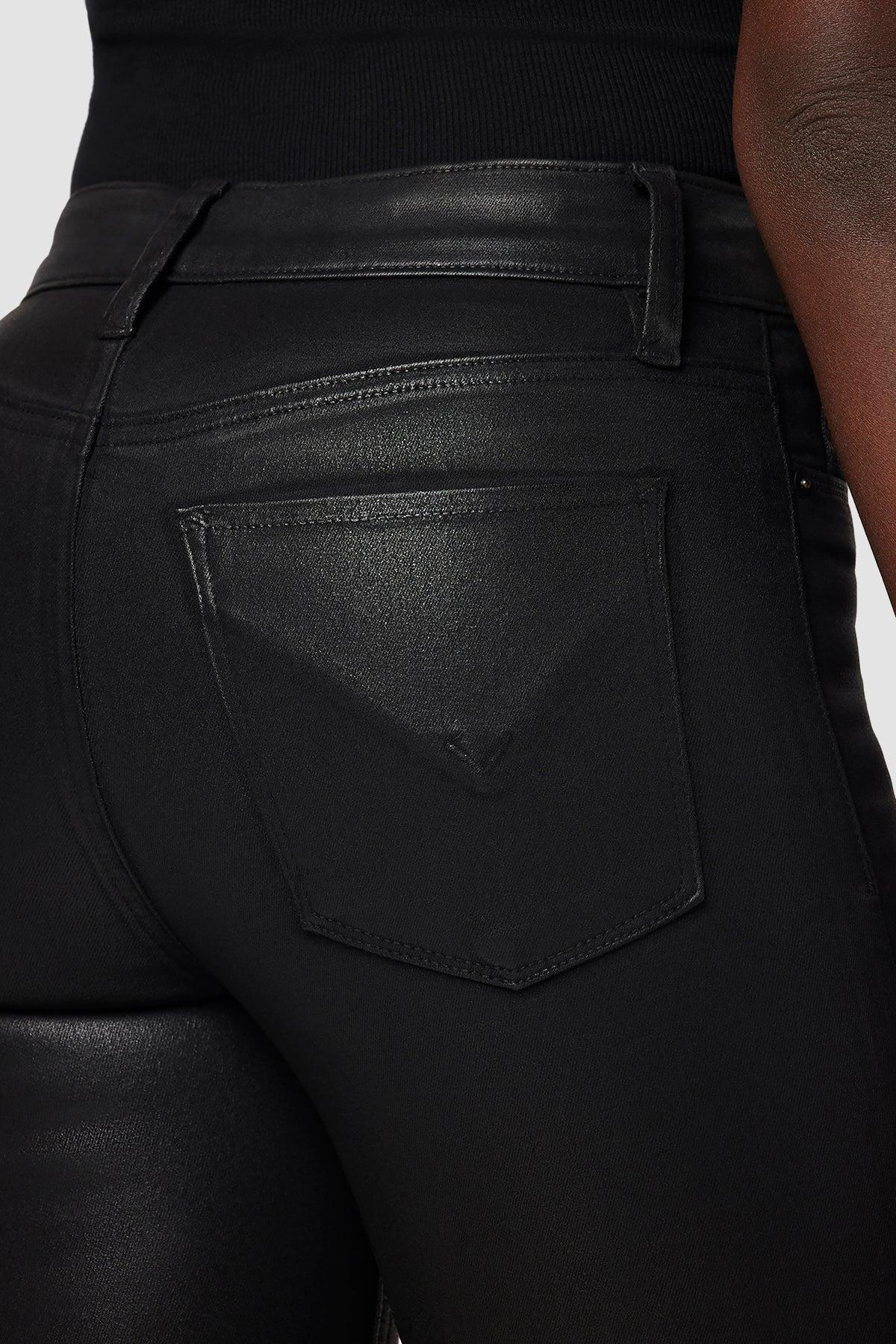 Description Our Barbara High-Rise Super Skinny Ankle Jean in Noir Coated is cut for a slim, contoured fit with an elevated waistline and a finished hem that’s cropped at the ankle. Made from premium stretch denim specially treated with a high-shine wax coating, it’s finished with classic five-pocket details. Product Details 5 Pocket StyleFront Rise: 10.25", Leg Opening: 10", Inseam: 28" Model Height 5'10"Model wearing size 25Measurements based on size 27 Fit & Care Content: 43% Vicose 33% Cotton 17% Cly 5% Pes 2% EaMachine wash cold with like colorsDo not bleachTumble dry low or hang to dry