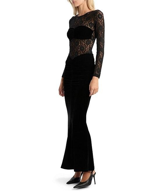 Bardot Helenie Velour Illusion Bodice Lace Bodycon Dress