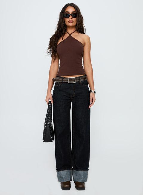 Halter ribbed top High neckline, split at sides, adjustable halter straps, crop fit Good stretch, unlined Princess Polly Lower Impact 95% reclaimed cotton 5% spandex Cold hand wash