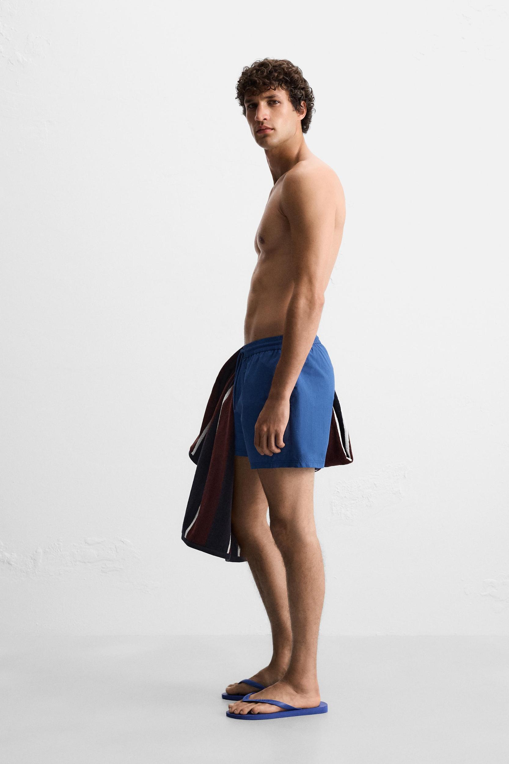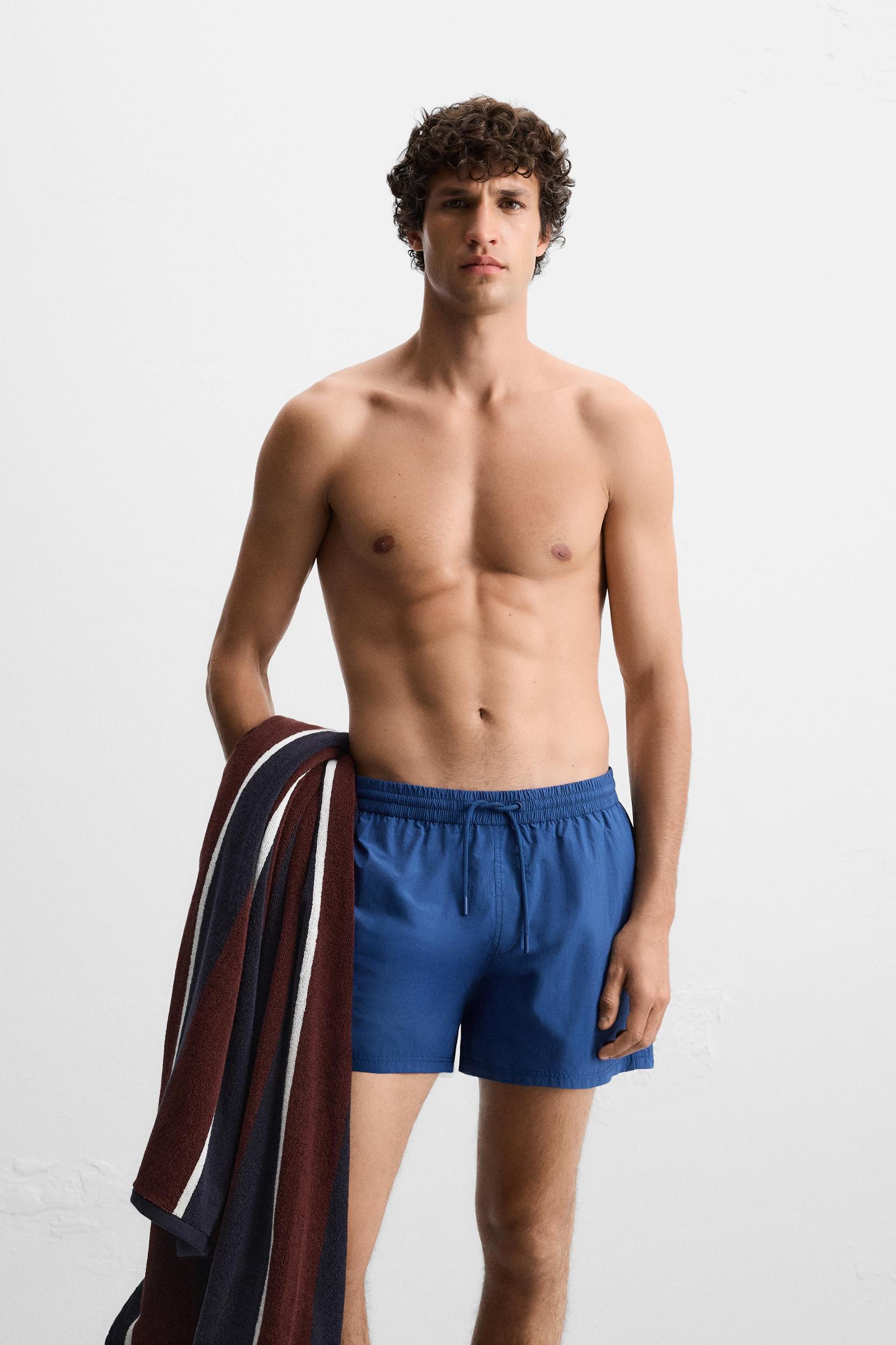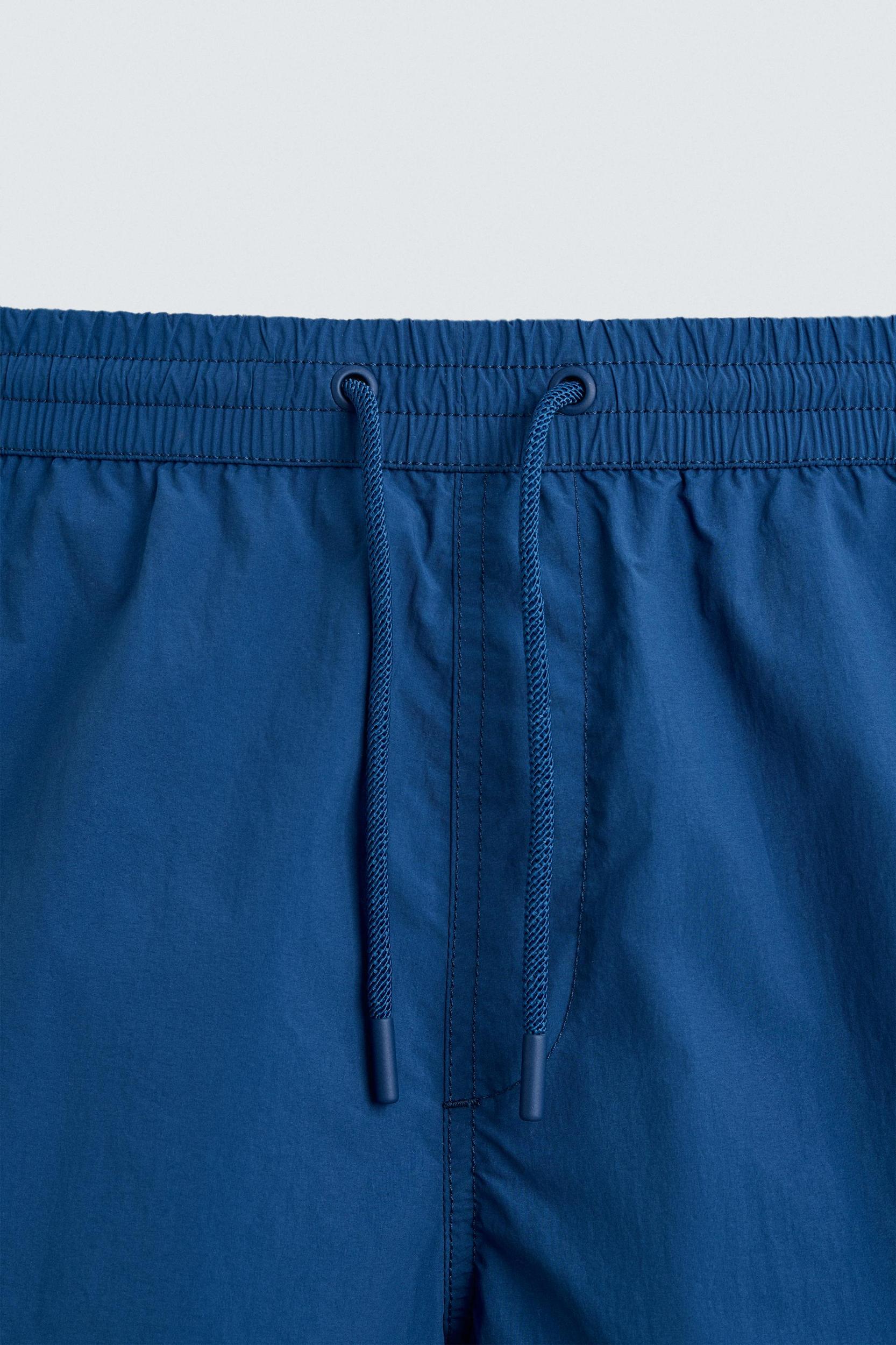 Swimsuit made in technical fabric. Elastic waistband adjustable with drawstring. Side pockets and patch back pocket detail. Inner lining. Inseam: 5.1 inches (13 cm) Outseam: 14.4 inches (36.5 cm)