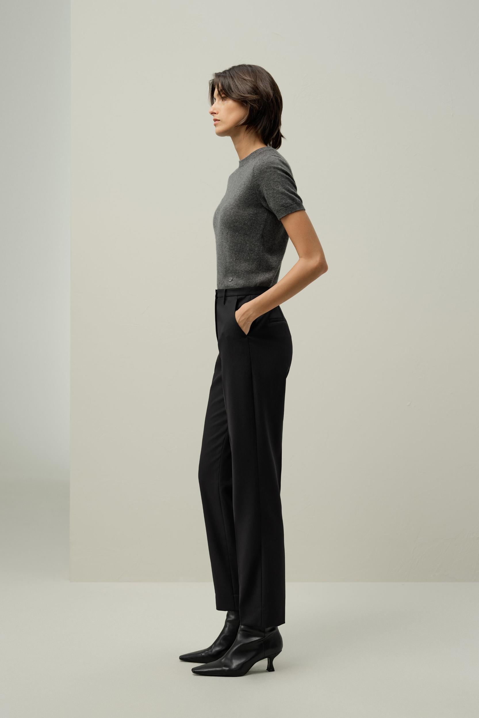 Basic silk-wool blend slim fit trousers
