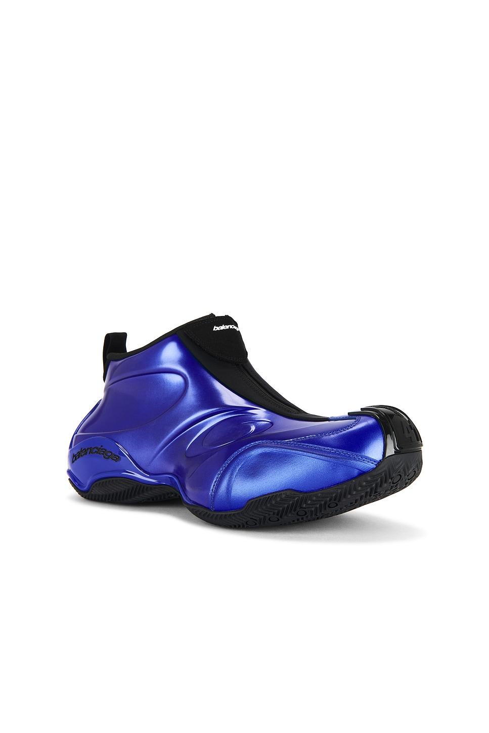 basketball sneakerLeather-free construction: upper in polyester, spandex, polyurethane, Lycra, and nylon; rubber sole, foam insole / Zip with hook-and-loop fastener / Worn-out, distressed effect with a debossed Loop Sports Icon logo exterior / Oversized, avant-garde profile blending athletic inspiration with signature Balenciaga branding / Padded collar and robust rubber sole / Made in China / Our Style No. BALF-MZ527 / Manufacturer Style No. 824909-WBKBM-4000 /