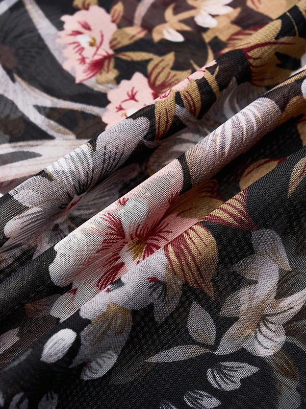 Batwing Sleeves Half Sleeves Flower Print See-Through Round-Neck Blouses&Shirts Tops Cover-Ups Tops