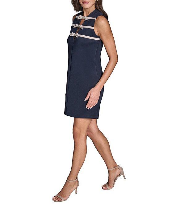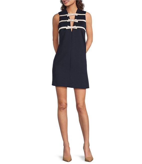 BCBG Contrast Bow Scuba Crepe Sleeveless Shift Dress