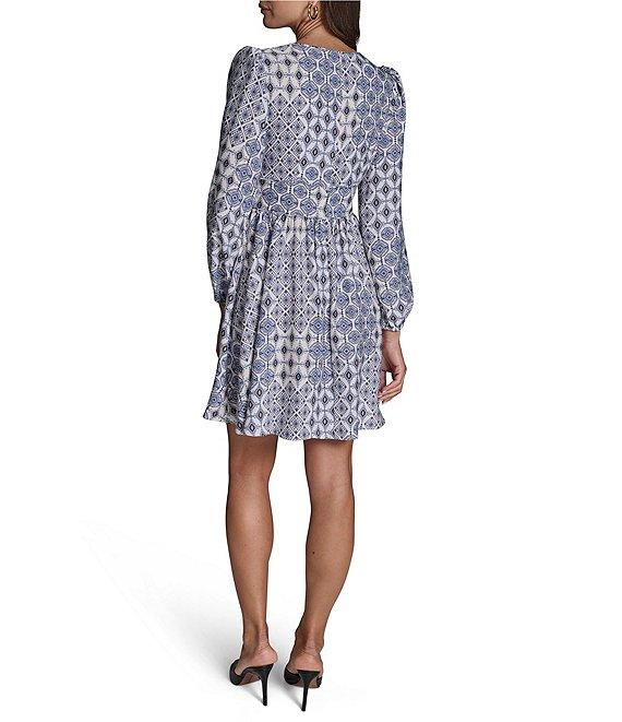BCBG Crepe Long Sleeve V-Neck Printed A-Line Mini Dress