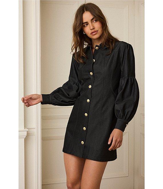 BCBG Denim Puff Sleeve Mini Shirtdress