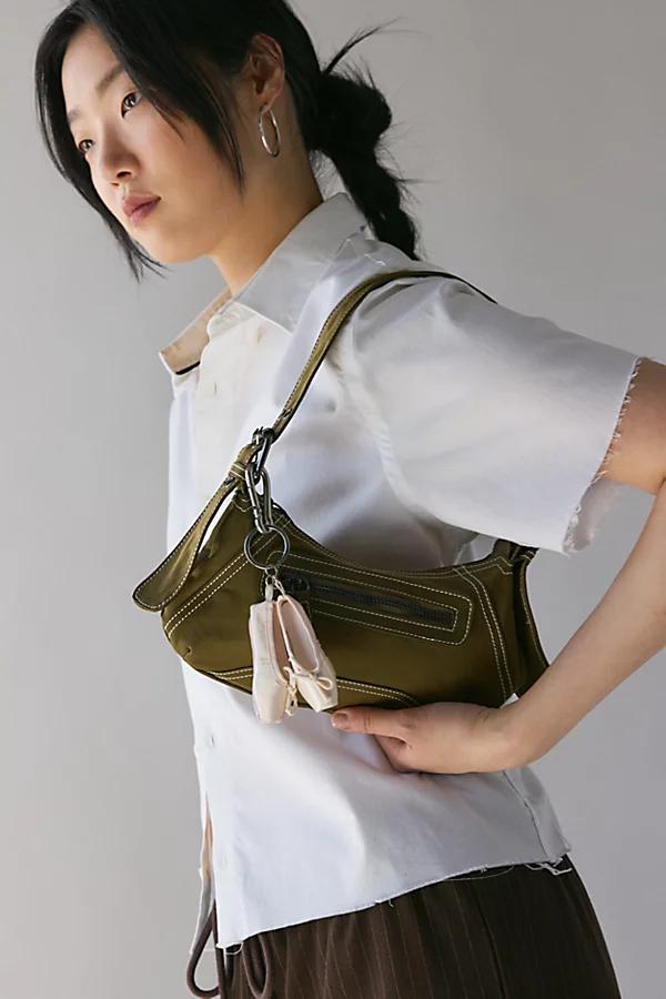 BDG Ash nylon shoulder bag with a retro Y2k bag aesthetic complete with contrast stitching and rivet hardware. This small nylon bag is the perfect new everyday bag style with just enough room for your essentials. Get it only at Urban Outfitters. Features BDG Ash nylon shoulder bag Retro nylon bag Slim small bag style Topstitched and rivet hardware accents Zippered closure Zippered front pocket Adjustable shoulder strap Add your fave bag charms, not included UO exclusive Content + Care Nylon, mix