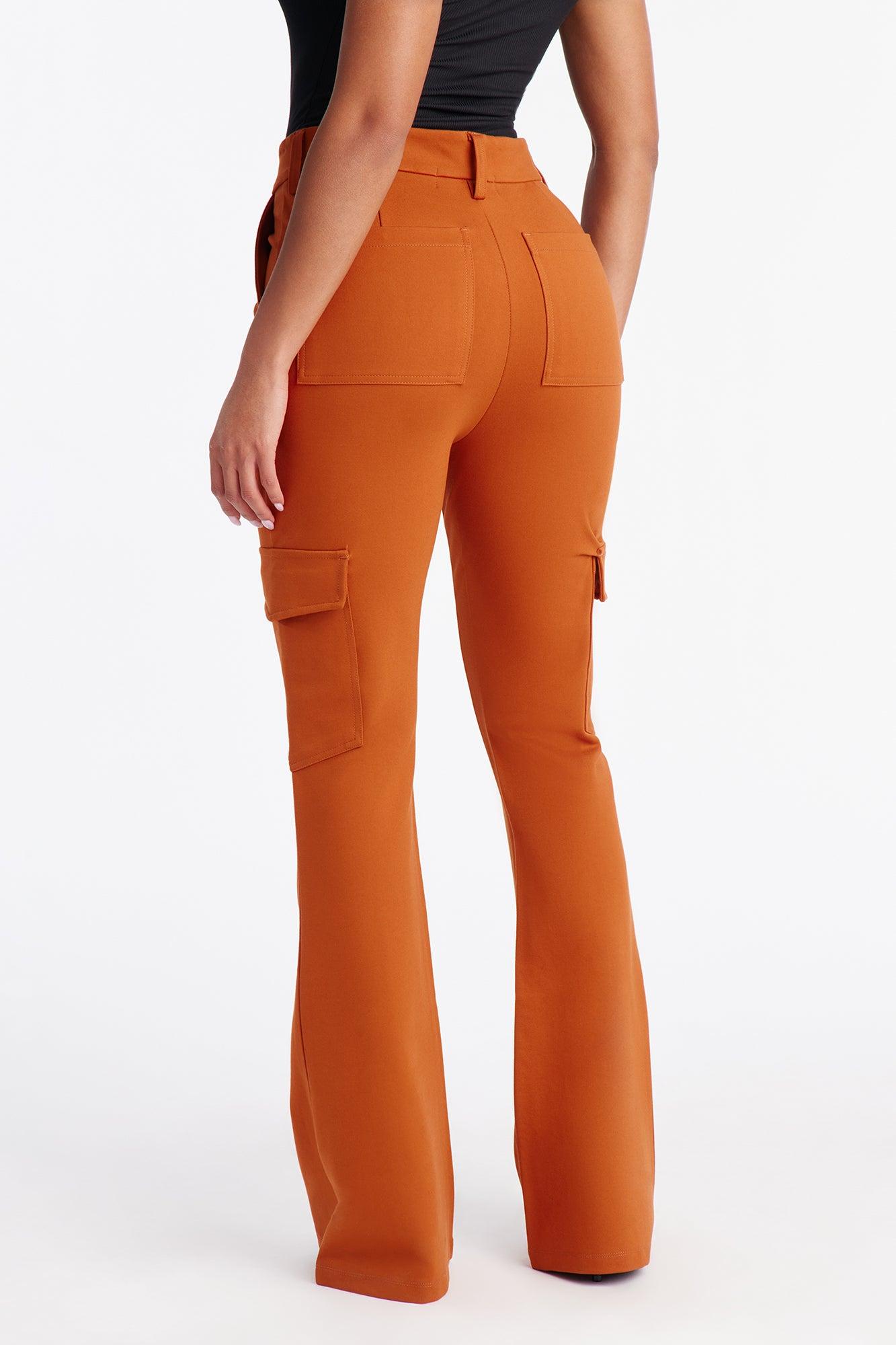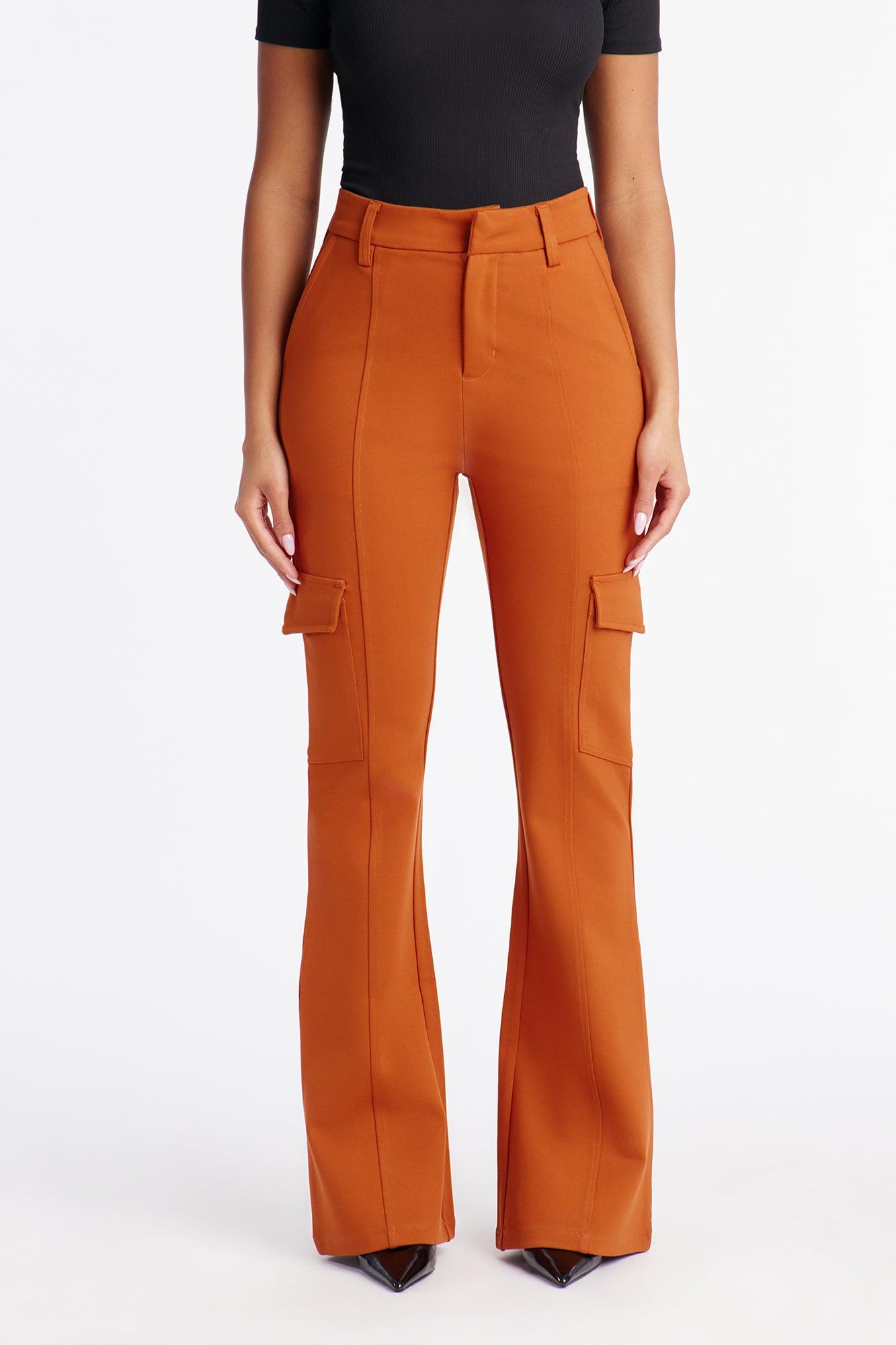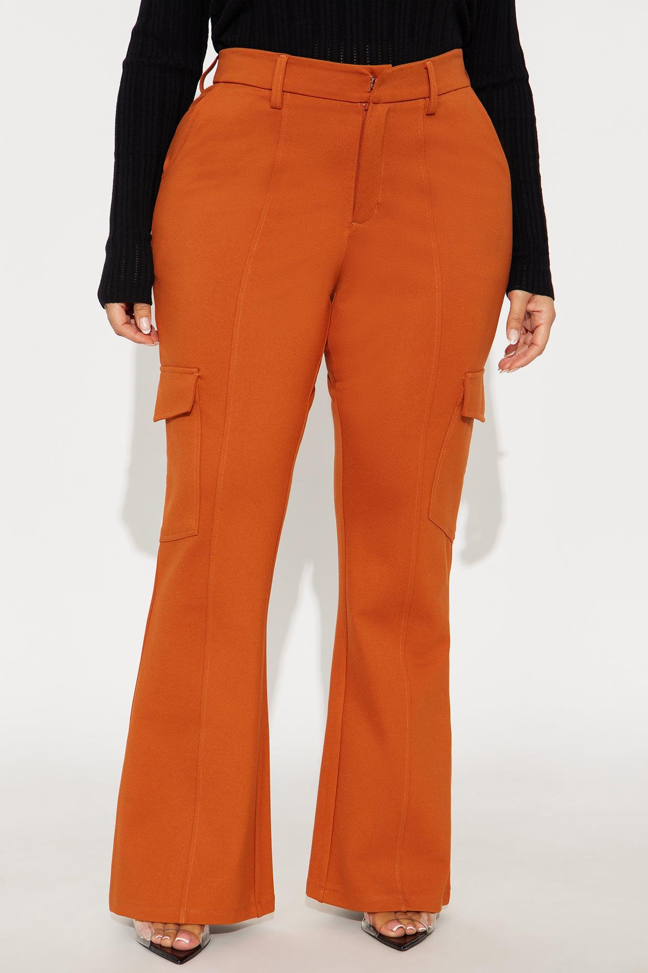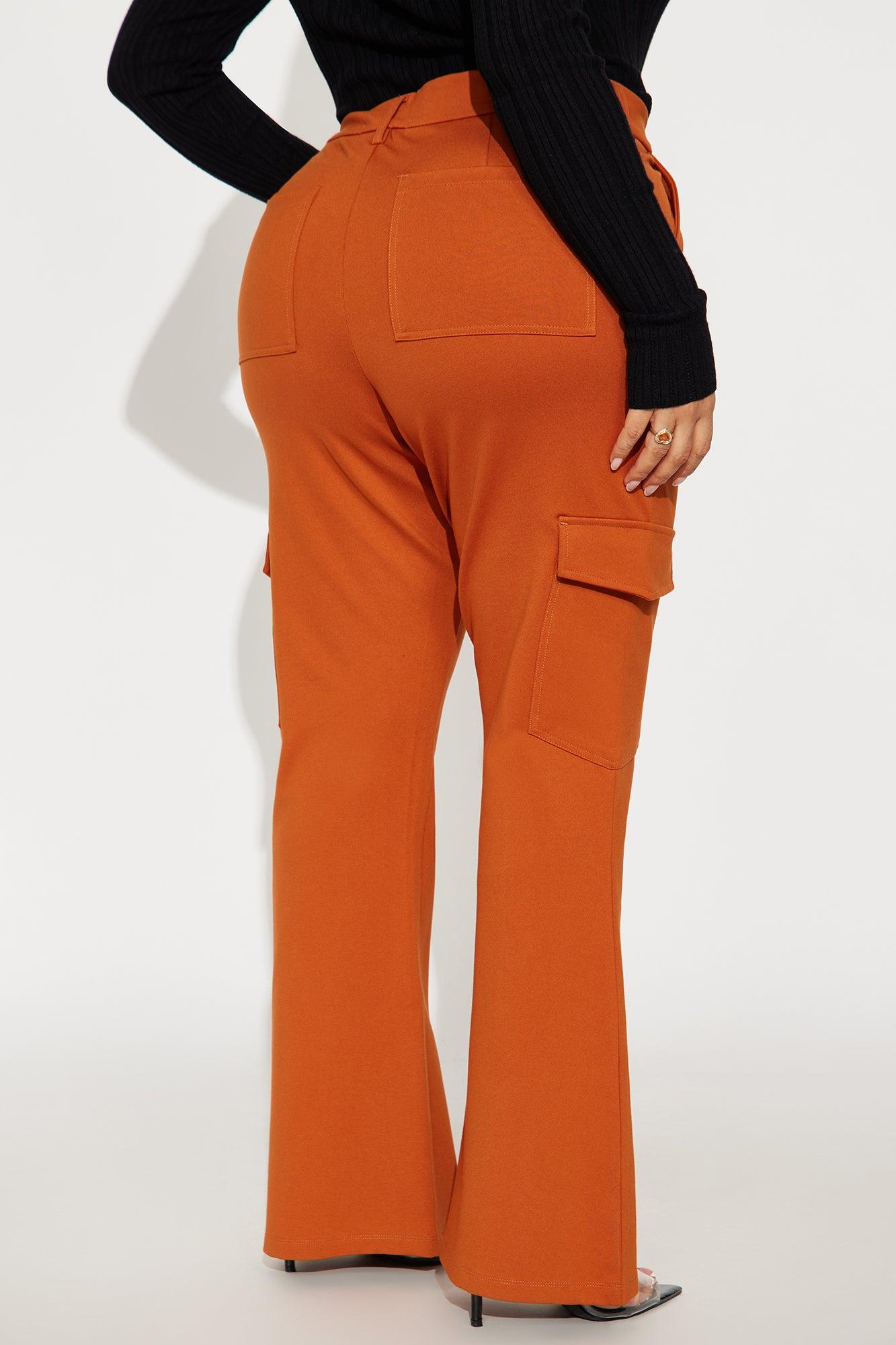 Available In Black, Olive And Rust. Flare Pants High Waist Cargo Pockets Zip Button Closure Belt Loops Stretch 71% Viscose 26% Polyester 3% Spandex Imported California Proposition 65WARNING: Cancer and Reproductive Harm - www.P65Warnings.ca.gov.
