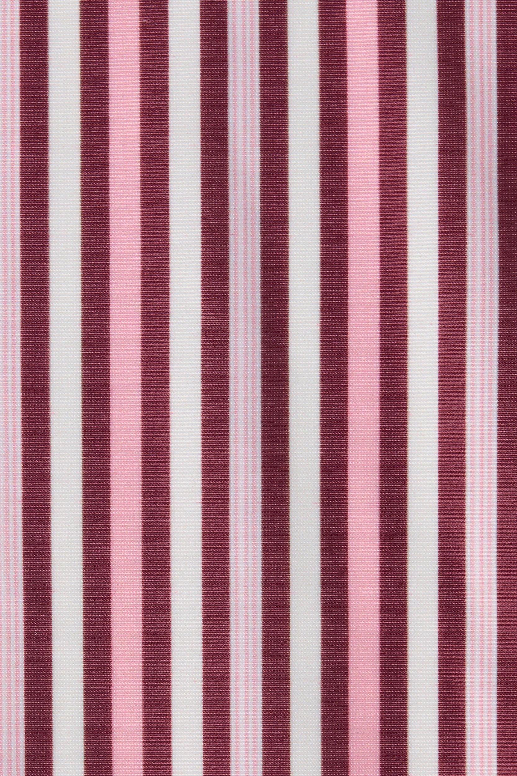 A simple bikini bottom that sits high on the waist with a slightly curved cut. Designed in a soft pink and caramel brown stripe with a metallic-like finish, style with the matching Kassia Bikini Top for your next vacation. This style is true to size and offers brief coverage. This fabrication does offer stretch.