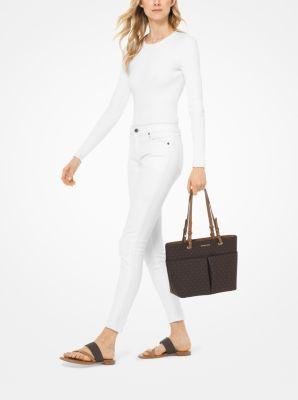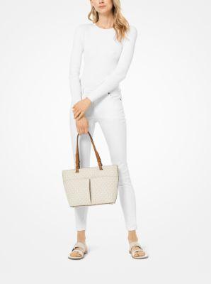 Manufacturer - MICHAEL Michael Kors Retail - $198.00 Style Type - Tote Handbag Collection - MICHAEL Michael Kors Sleeve Length - Closure - Zipper Material - Coated Canvas Fabric Type - Canvas Specialty - Coated P2614935Elevate your look with the Bedford signature print tote handbag by MICHAEL Michael Kors. Crafted with coated canvas and textile linings. This roomy tote flaunts an open slip compartment, two additional front pockets, and flashy goldtone hardware. It's functional design will make it a favorite for everyday wear or travel. Signature logo print. Sturdy double handles with a top zipper closure. 10.5"x14"x5". This handbag is guaranteed authentic.The item for sale is pictured above and described on this page. The photo may include additional clothing or props that are for display purpose only and will not be included. Please be sure to read the description carefully.