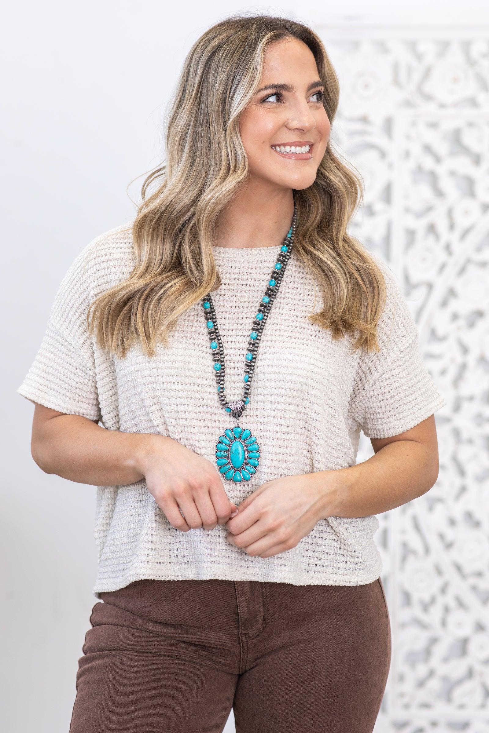 Product Details Colors: Beige Print: Solid Waffle Neckline: Round Sleeve: Short Sleeve Hemline: Straight Brand: Zenana Material and Care 69% Polyester 29% Rayon 2% Spandex Machine Wash Cold Hang/Line Dry Size and Fit Small: Bust 50" Waist 50" Length 20" Medium: Bust 52" Waist 52" Length 20.5" Large: Bust 54" Waist 54" Length 21" X Large: Bust 56" Waist 56" Length 21.5" Photo model is 5'7 and wearing a size small Video model is 5’7 and wearing size small