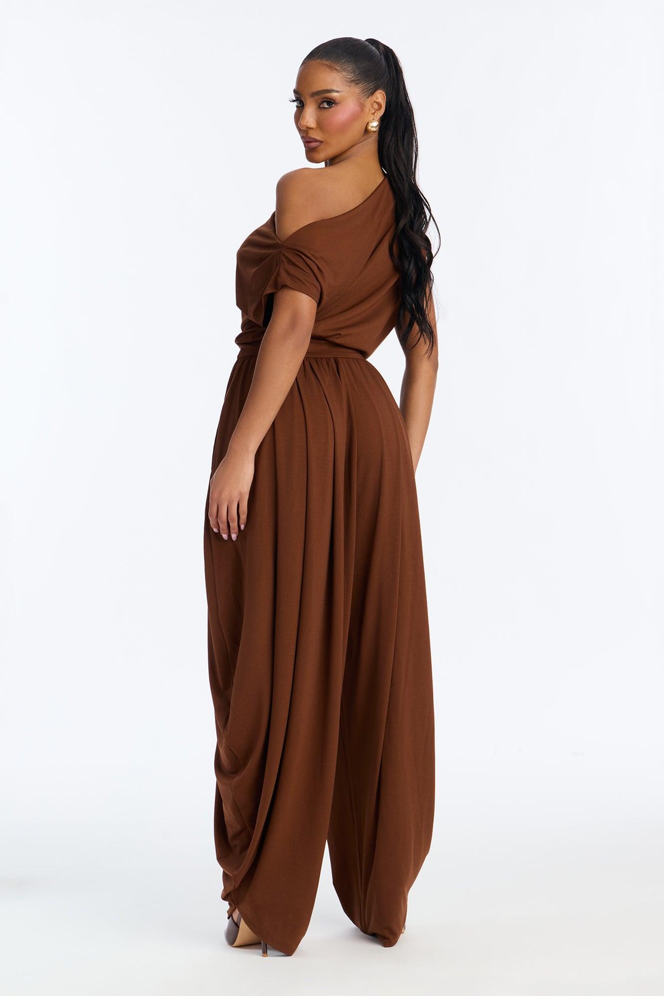 Belina Balloon Leg Off Shoulder Jumpsuit - Brown Female