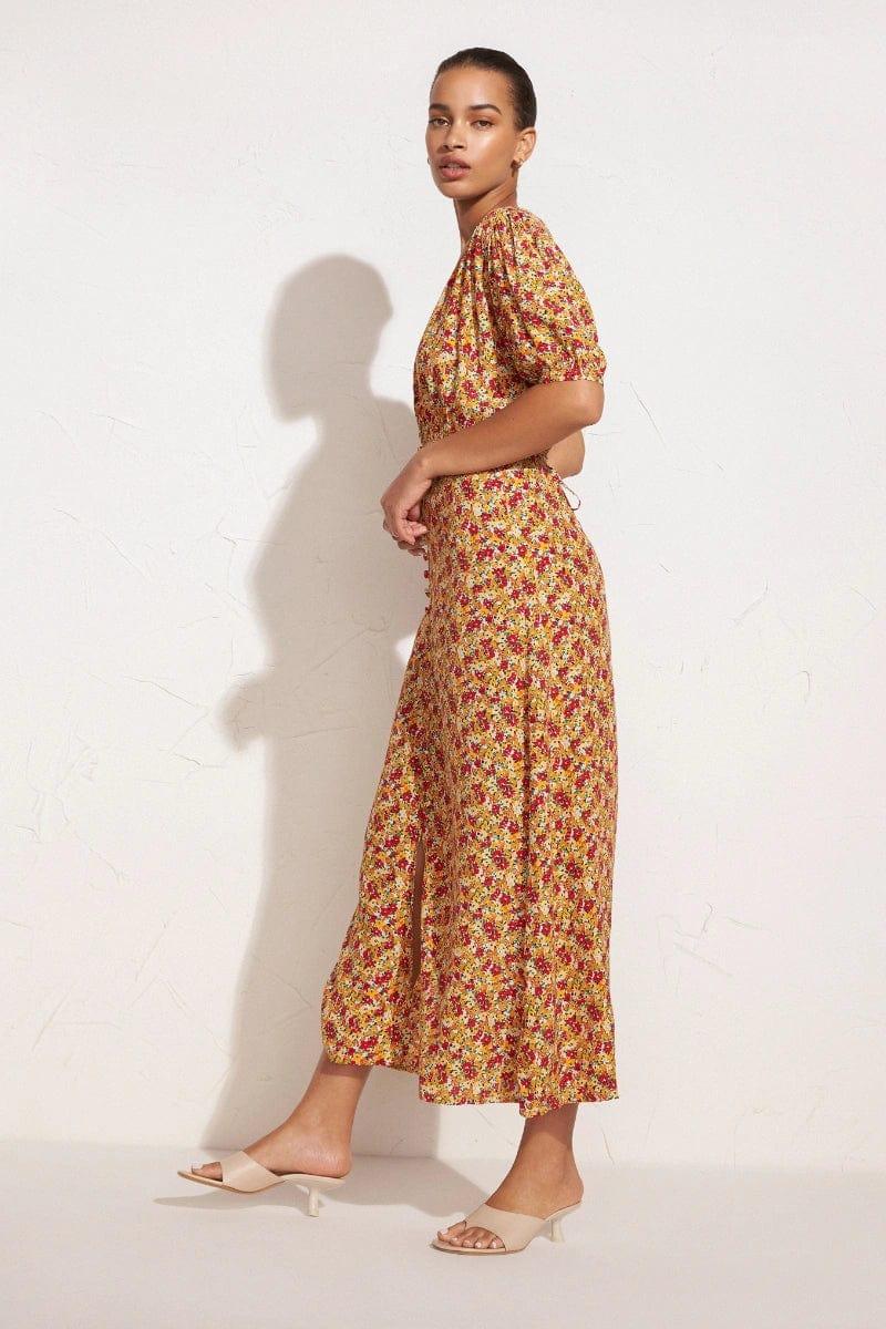The Bellavista Midi Dress in La Gomera Floral is a key style in the Il Mediterraneo collection, featuring a V neckline, fixed waistband with self-fabric waist ties, feminine centre front split and finished with a floaty A-line skirt. Cut from 100% Rayon Crepe - FSC Certified Fibres. This dress is perfect paired back with a white strappy heel for your next spring soiree.